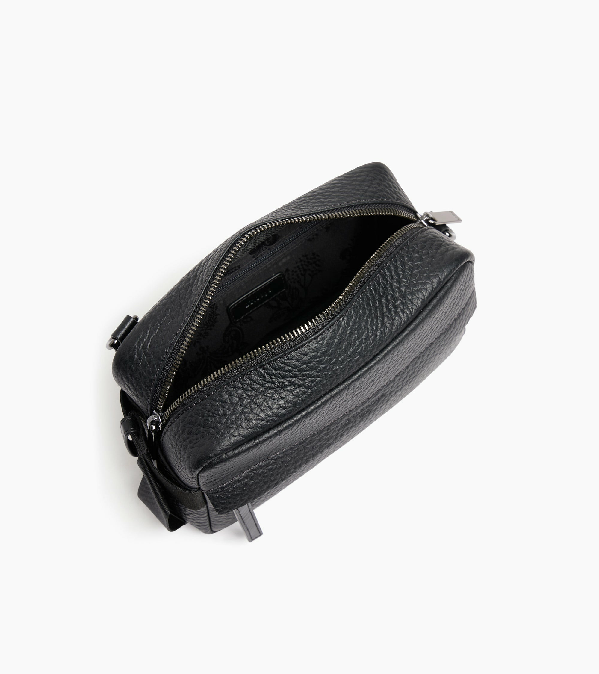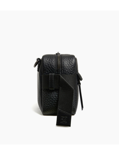 Dimensions compactes, cuir grain buffle et cuir lisse, fermeture zippée sécurisée, bandoulière réglable, doublure intérieure soignée.