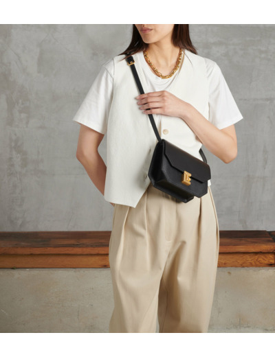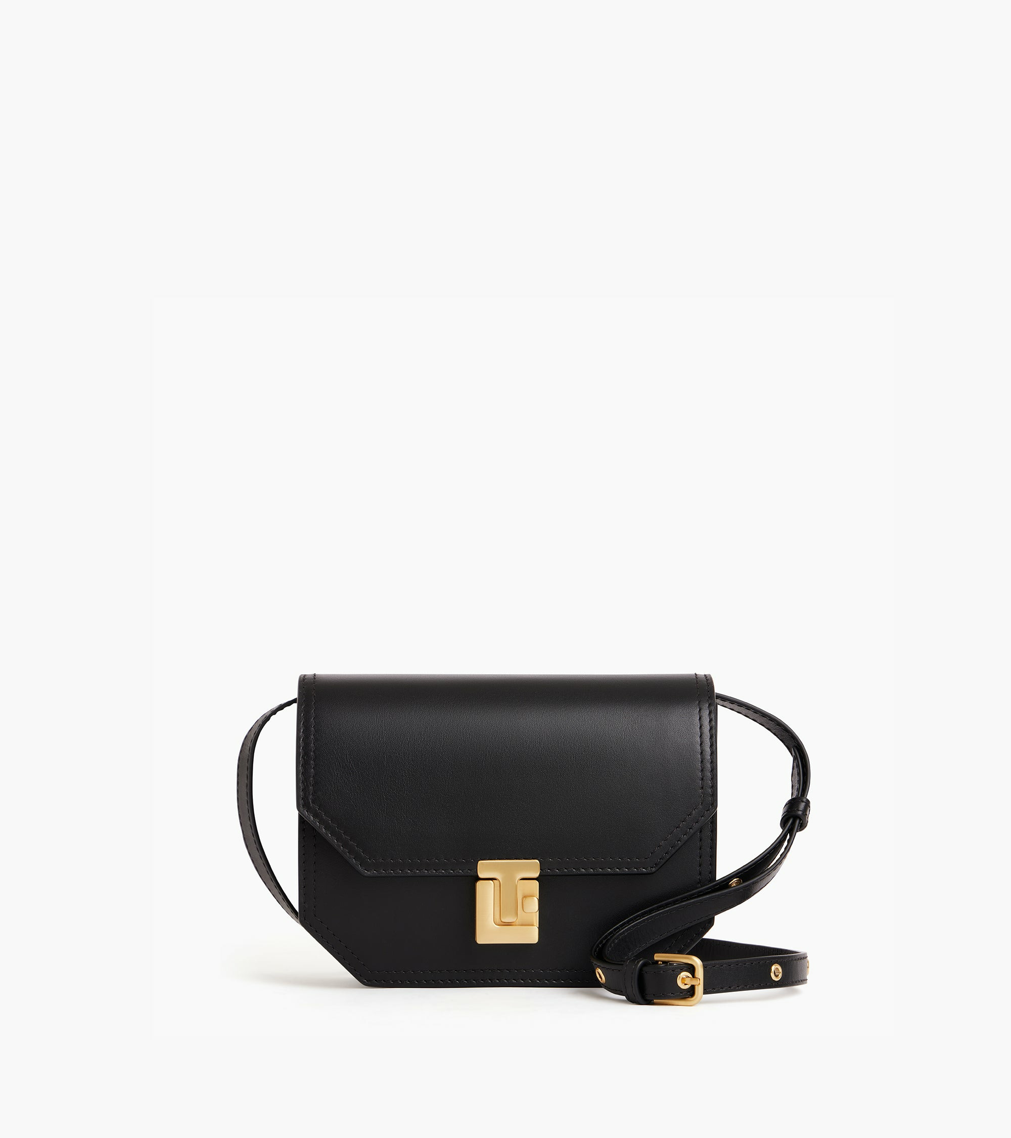 Petit sac bandoulière avec fermoir signature et intérieur jacquard anniversaire 125 ans. Porté main, épaule ou croisé grâce à sa bandoulière ajustable et amovible.Cuir de vachette pleine fleur lisse. Doublure textile jacquard noir.1 poche plate et 1 poche zippée. 1 poche aimantée arrière. Bandoulière ajustable et amovible.Accessoires métalliques finition doré brossé.Largeur : 19.5 cm x Hauteur : 14.5 cm x Profondeur : 6.5 cm