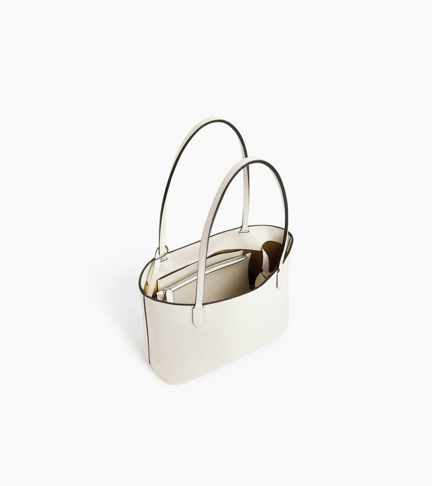 Petit sac cabas zippé en cuir grainé double face intérieur contrasté et pochette amovible. Porté épaule.Cuir de vachette pleine fleur grainé double face. Doublure cuir de vachette.1 poche plate, 1 pochette zippée amovible.Accessoires métalliques finition argent.Largeur : 31 cm x Hauteur : 23 cm x Profondeur : 13 cm