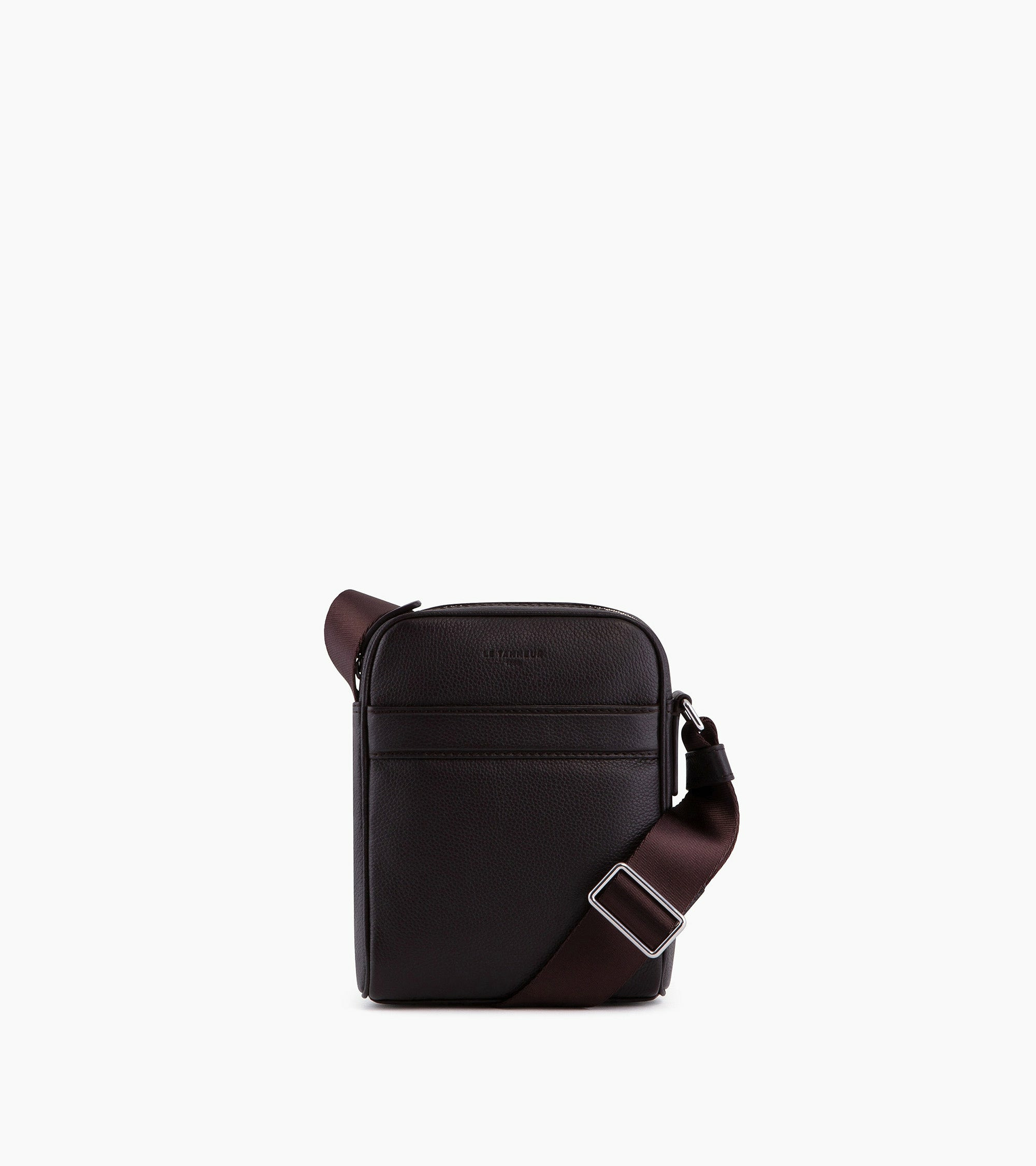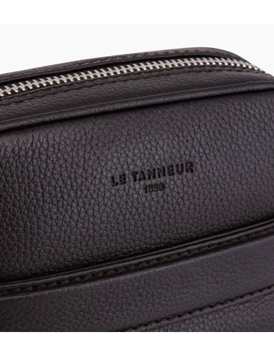 Petite sacoche zippé avec marquage Le Tanneur ton sur ton. Tirette piquée en T, signature de la Maison. Portez-le à l’épaule ou croisé avec sa bandoulière ajustable.Cuir de vachette pleine fleur grainé. Doublure textile.2 poches plates. 1 poche plate avant. Bandoulière ajustable.Accessoires métalliques finition argent.Largeur : 16 cm x Hauteur : 21 cm x Profondeur : 5 cm