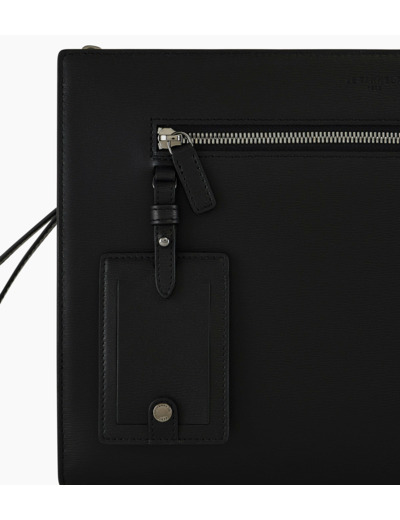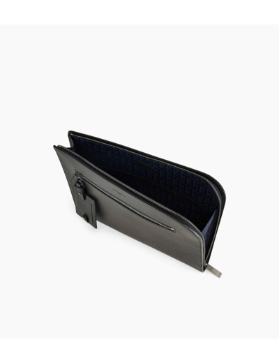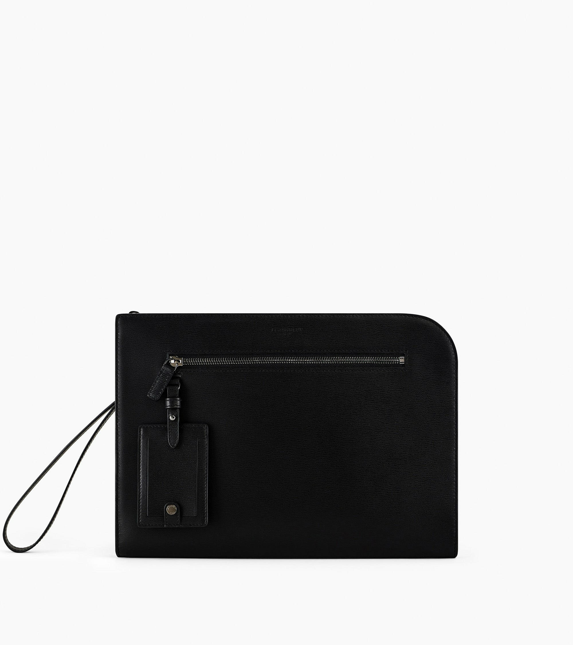 Pochette A4 finition canon de fusil avec dragonne et charms amovible. Marquage Le Tanneur ton sur ton.Cuir de vachette pleine fleur liégé. Doublure textile Le Bleu4 poches plates, 1 poche zippée avant. Dragonne amovible.Accessoires métalliques finition canon de fusil.Largeur : 33.5 cm x Hauteur : 24 cm x Profondeur : 3 cm