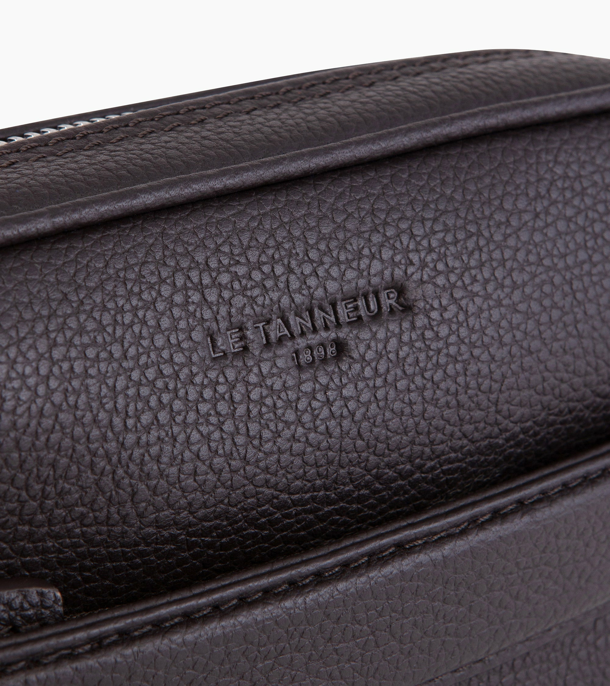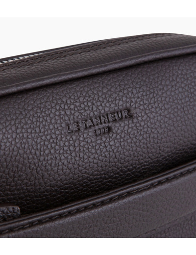 Pochette zippée avec passant ceinture et dragonne pouvant se glisser dans le dessous de la pochette. Marquage Le Tanneur ton sur ton. Tirette piquée en T, signature de la Maison. Porté main ou ceinture.Cuir de vachette pleine fleur grainé. Doublure textile Le Bleu3 poches plates et 1 passant stylo, 1 poche moussée ordinateur, 2 poches zippées avant. Bretelles ajustables.Accessoires métalliques finition argent.Largeur : 20 cm x Hauteur : 14 cm x Profondeur : 5.5 cm