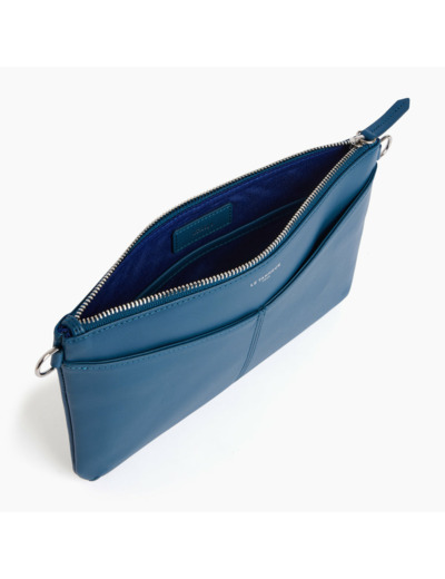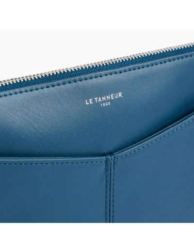 Marquée sur film d’argent, cette pochette zippée comporte une doublure Le Bleu signature de la Maison. Elle possède une bandoulière amovible et ajustable pour un porté pochette, épaule ou croisé.Cuir de vachette pleine fleur lisse. Doublure textile.1 poche plate, 2 poches plates avant. Bandoulière amovible et ajustable.Accessoires métalliques finition argent.Largeur : 23 cm x Hauteur : 14 cm