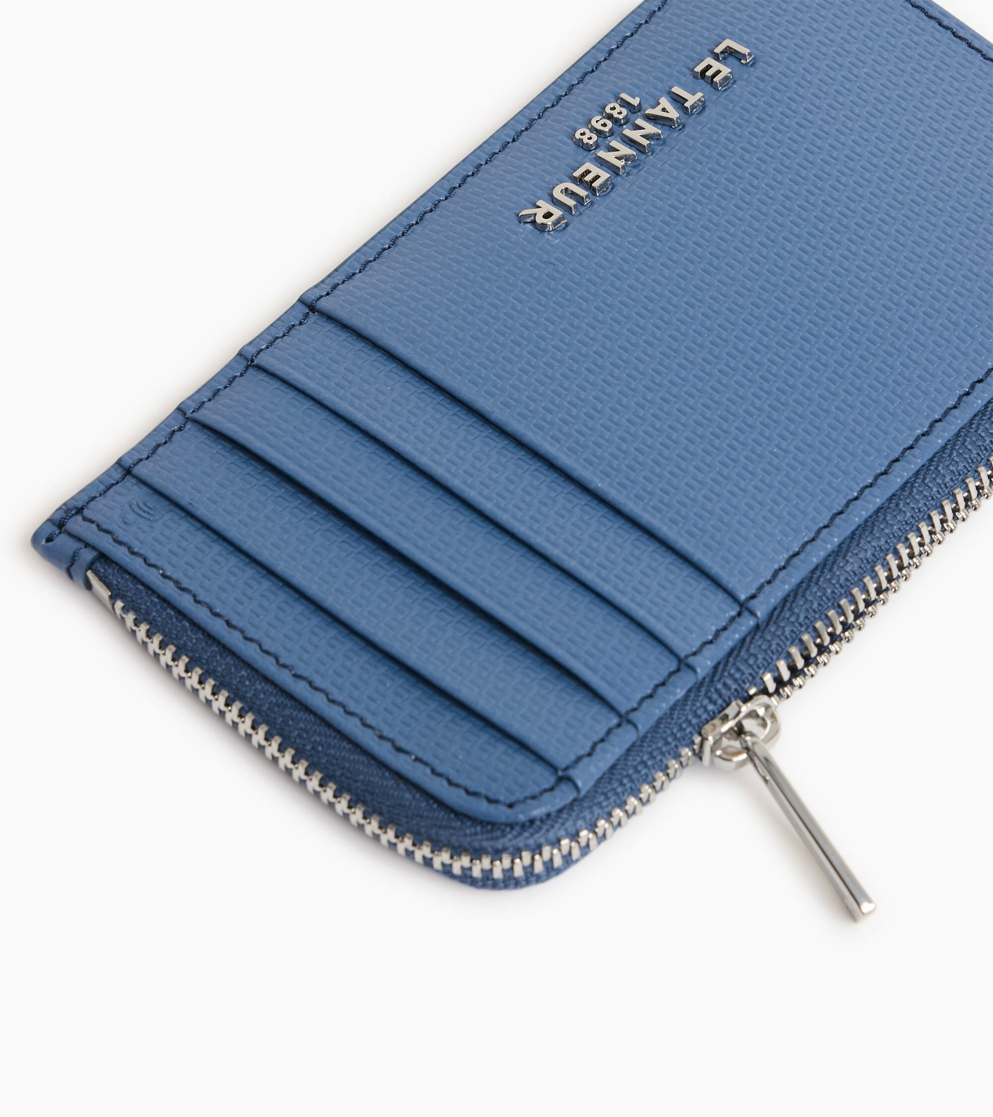 Dimensions : 12 x 9 cm. Matière : cuir pleine fleur signature Le Tanneur. Fermeture : zip métallique robuste. Compartiments : plusieurs fentes pour cartes, un espace pour billets et une poche zippée pour pièces.