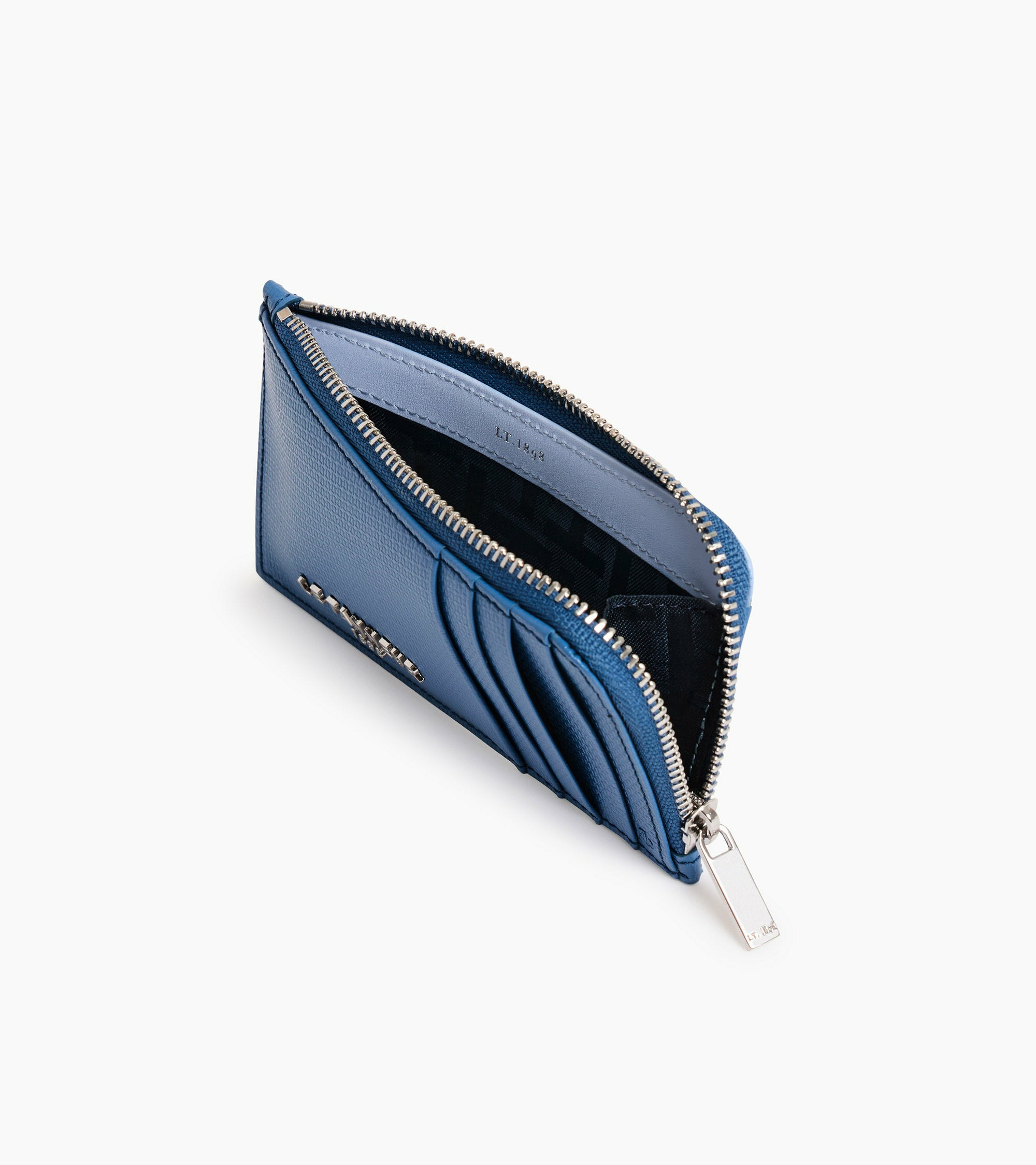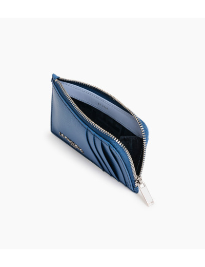 Ce porte-cartes en cuir T signature de la Maison arbore un marquage en métal noir. Ce modèle est zippé en L.Cuir de vachette signature T. Doublure textile jacquard crépuscule.1 poche monnaie zippée, 1 poche plate arrière et 4 compartiments cartes avant.Accessoires métalliques finition argent.Largeur : 13 cm x Hauteur : 7 cm