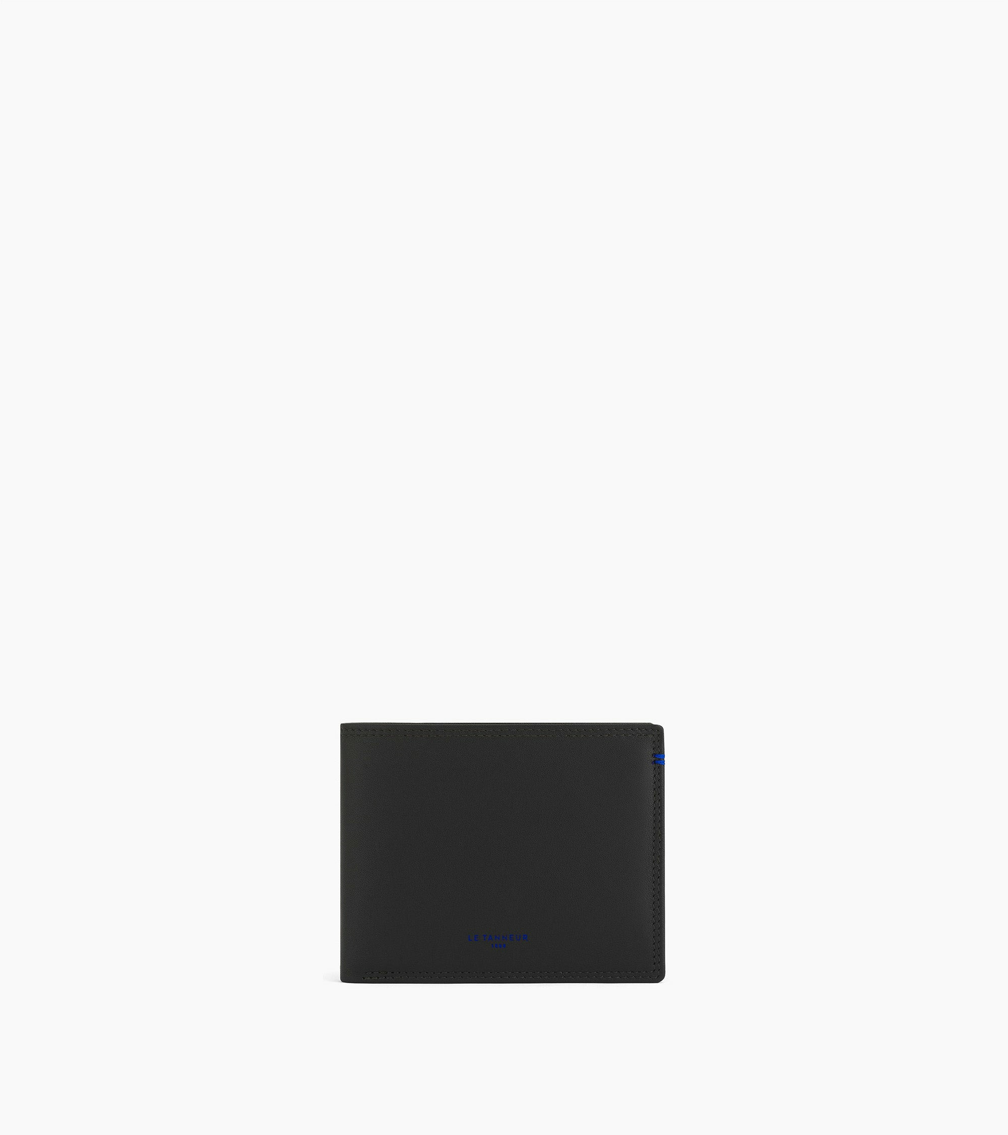 Ce porte-cartes et poche à billets arbore un discret marquage Le Tanneur couleur Le Bleu, ainsi qu’un double point du même contraste cousu à la main.Cuir de vachette pleine fleur lisse. Doublure textile.2 poches plates, 2 poches billets et 9 compartiments cartes. 2 poches plates et 9 compartiments cartes.Accessoires métalliques finition argent.Largeur : 12 cm x Hauteur : 9 cm