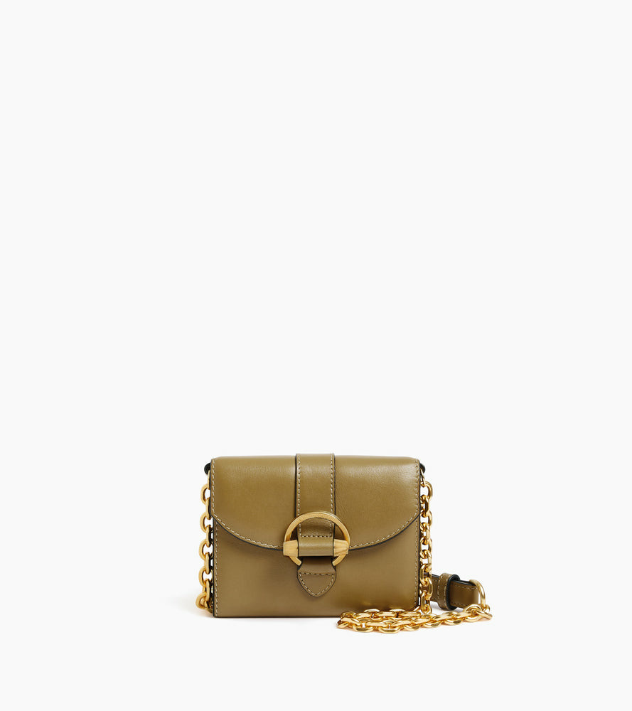 Porte-cartes avec fermoir signature et marquage Le Tanneur gravé. Bandoulière chaine et cuir ajustable. Porté épaule ou croisé.Cuir de vachette pleine fleur lisse. Doublure textile jacquard anniversaire noir.2 poches plates, 3 compartiments cartes, 1 poche à pression monnaie. 1 compartiment billet. Bandoulière cuir et chaine ajustableAccessoires métalliques finition doré clair.Largeur : 12 cm x Hauteur : 9 cm x Profondeur : 1 cm
