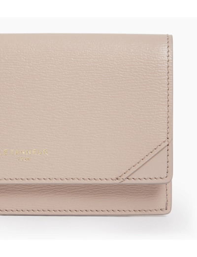 Porte-cartes à rabat avec marquage Le Tanneur.Cuir de vachette pleine fleur liégé et lisse. Doublure textile jacquard noir.2 compartiments cartes intérieurs et une poche plate. 4 compartiments cartes à l'arrière et une poche plate.Accessoires métalliques finition doré clair.Largeur : 13.5 cm x Hauteur : 8.5 cm x Profondeur : 1 cm