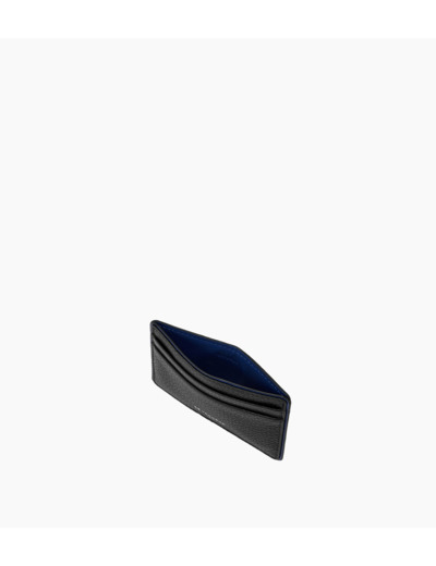 Porte-cartes avec liseré bord franc bleu signature. Sécurité anti-RFID.Cuir de vachette grainé. Doublure textile.1 poche plate et 3 compartiments cartes.Accessoires métalliques finition argent.Largeur : 10 cm x Hauteur : 7 cm