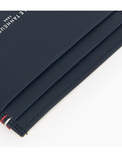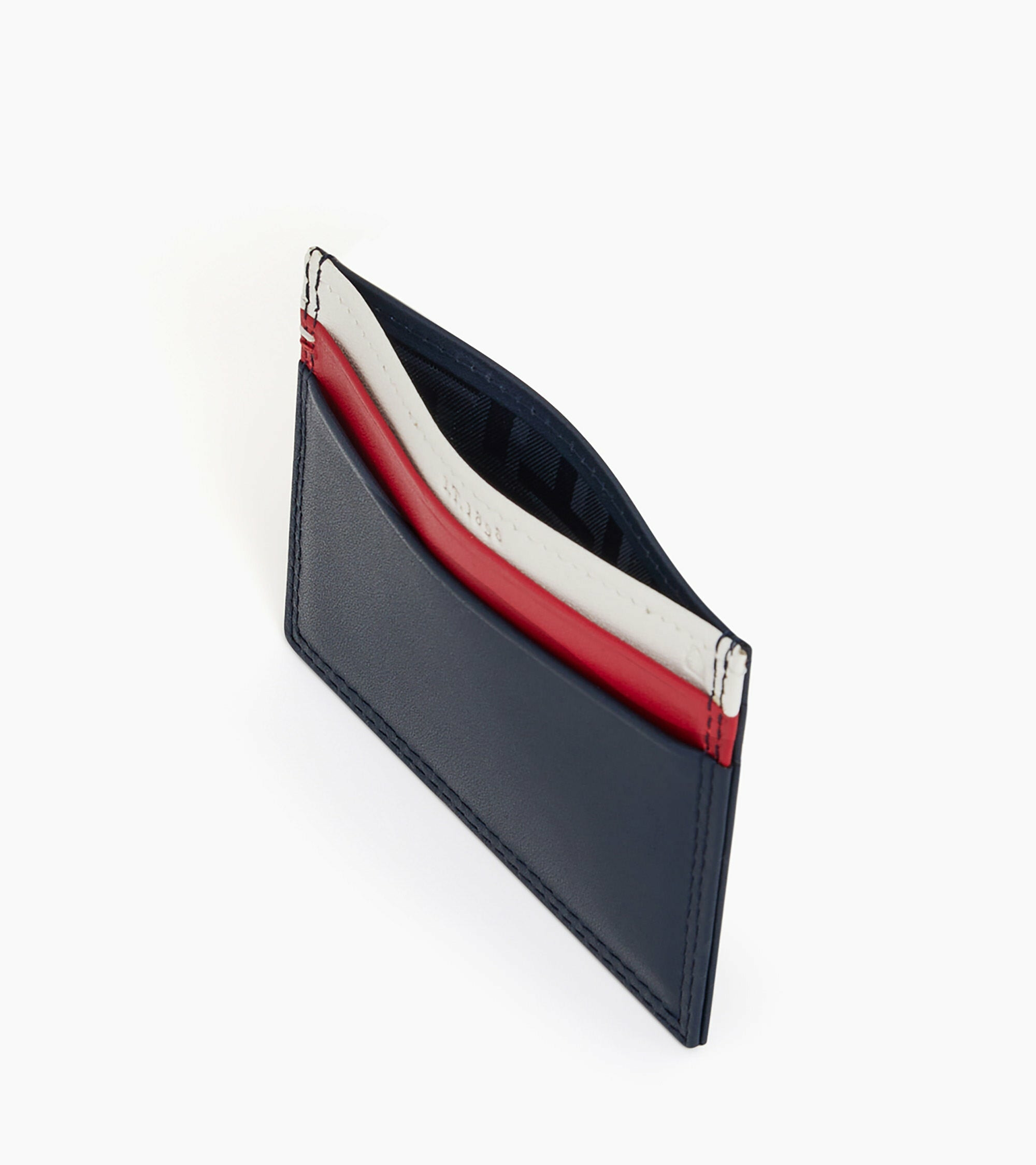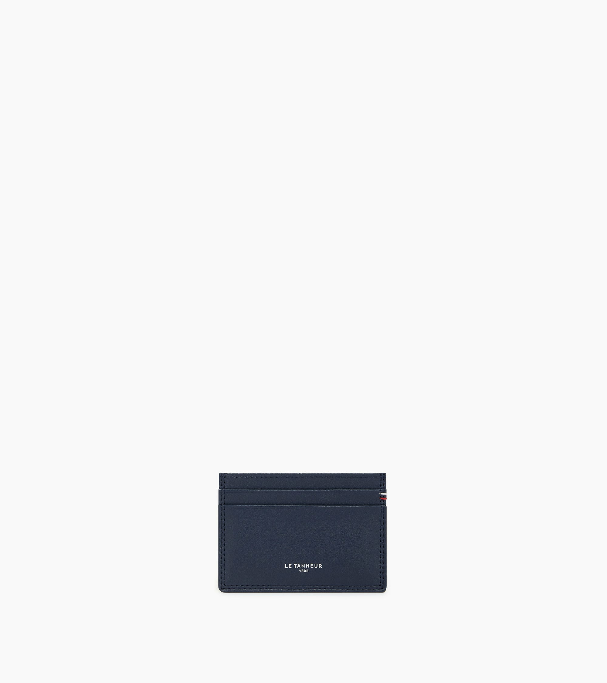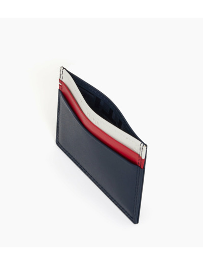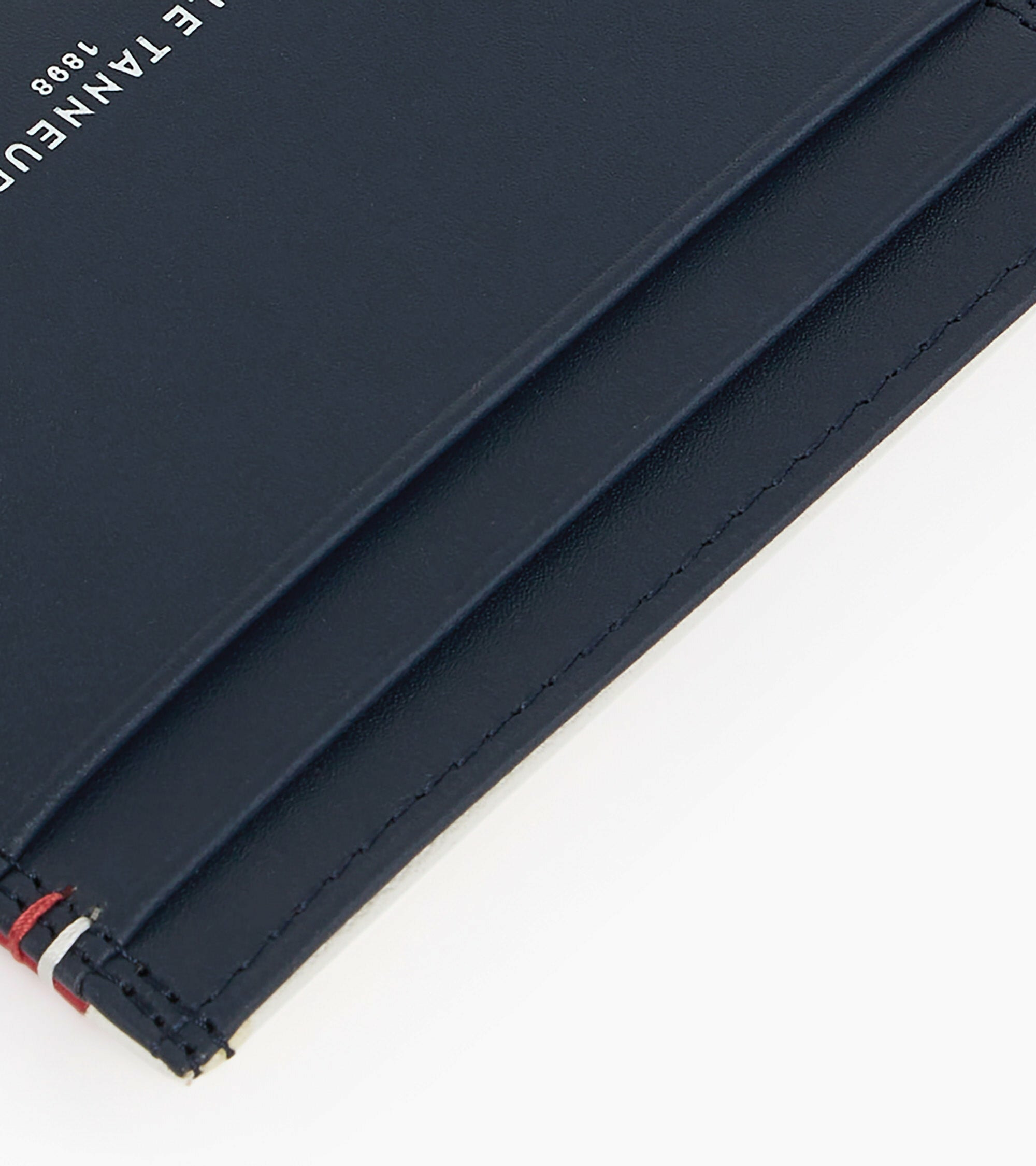 Porte-cartes tricolore avec marquage Le Tanneur sur film blanc. Sécurité anti-RFID.Cuir de vachette pleine fleur lisse. Doublure textile.1 poche plate et 4 compartiments cartes.Largeur : 10 cm x Hauteur : 7 cm