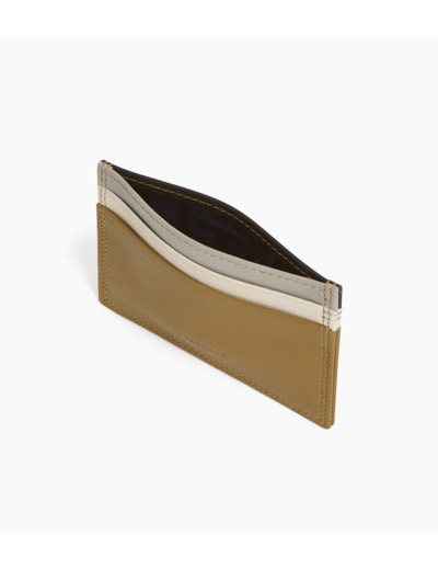Porte-cartes multicolore avec points bride contrastés réalisés à la main et marquage Le Tanneur ton sur ton. Dispose d'une protection RFID.Cuir de vachette pleine fleur lisse. Doublure textile jacquard T crépuscule.1 poche plate et 4 compartiments cartesAccessoires métalliques finition argent.Largeur : 10 cm x Hauteur : 7 cm x Profondeur : 1 cm