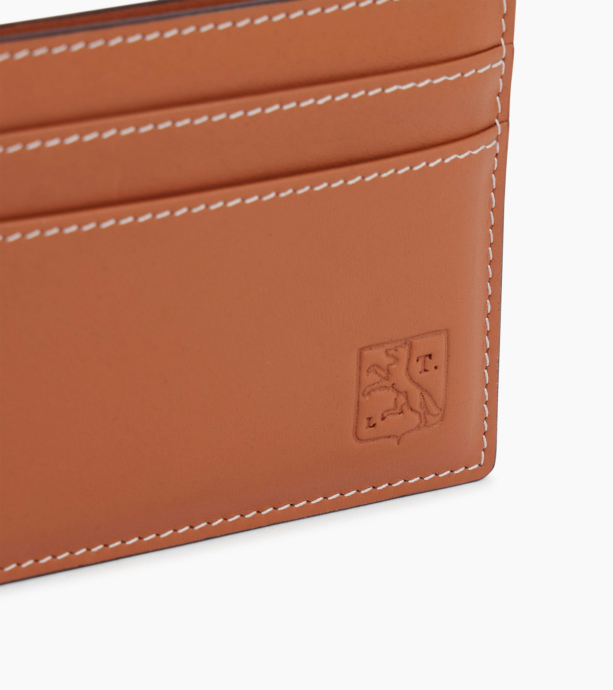 Porte-cartes en toile enduite et cuir lisse avec marquage Le Tanneur ton sur ton. Sécurité anti-RFID.Cuir de vachette pleine fleur lisse.1 poche plate. 4 compartiments cartes.Accessoires métalliques finition argent brossé.Largeur : 9.5 cm x Hauteur : 7 cm x Profondeur : 1 cm
