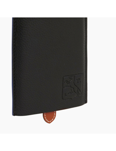 Porte-cartes coulissant tour de cou avec marquages Le Tanneur ton sur ton.Toile enduite signature et cuir lisse de vachette pleine fleur à tannage végétal. Doublure textile Le Bleu.1 poche monnaie rabat, 4 compartiments cartes, 2 poches billets et 1 bandoulière amovible.Accessoires métalliques finition argent.Largeur : 10 cm x Hauteur : 11 cm