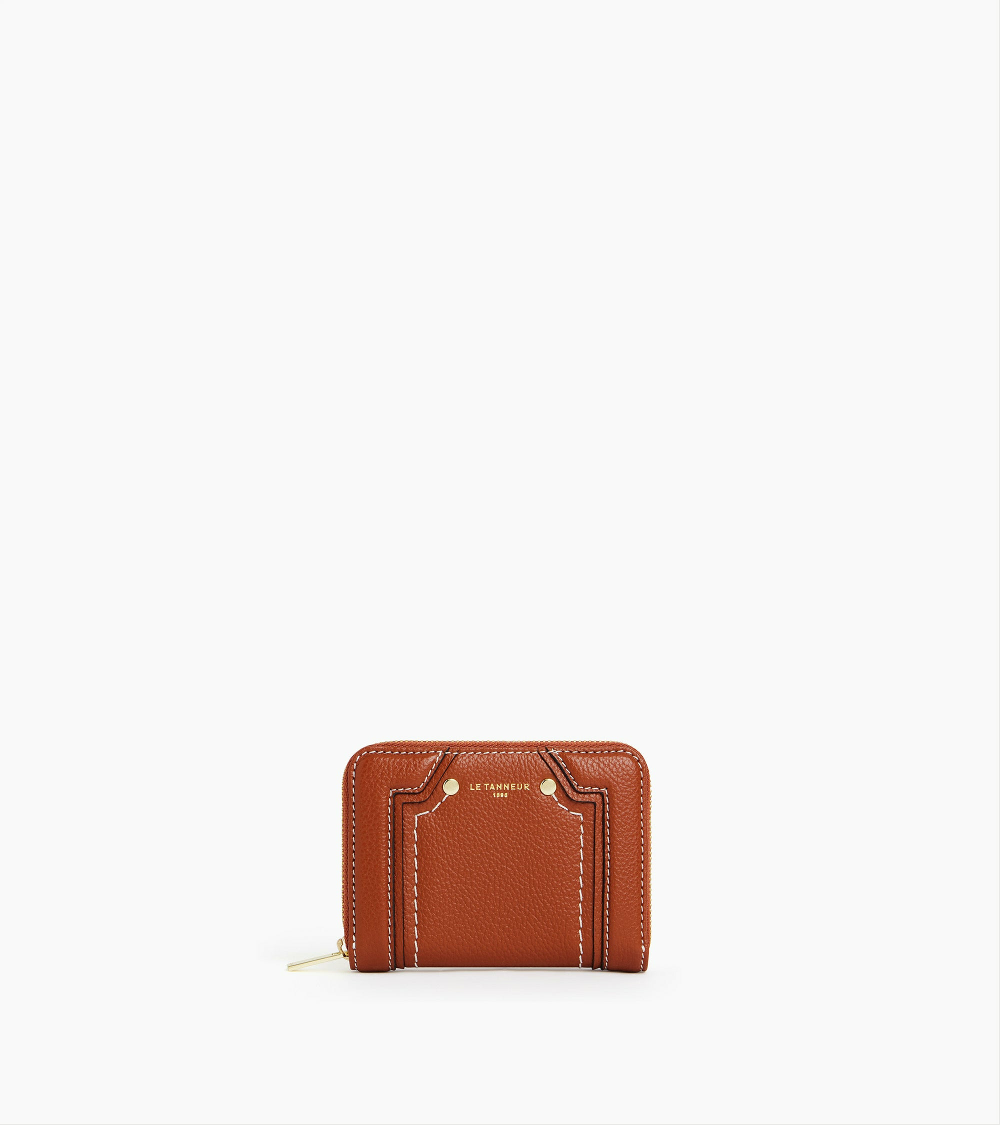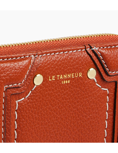 Porte-cartes zippé avec intérieur accordéon et marquage Le Tanneur.Cuir de vachette pleine fleur grainé. Doublure textile jacquard noir.1 poche zippée accordéon avec 5 soufflets. 2 compartiments cartes.Accessoires métalliques finition doré clair.Largeur : 11 cm x Hauteur : 8 cm x Profondeur : 2 cm