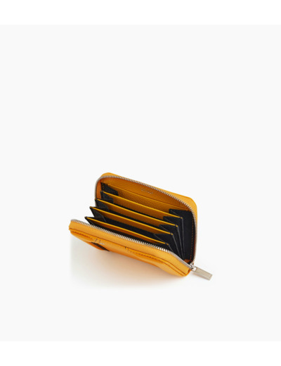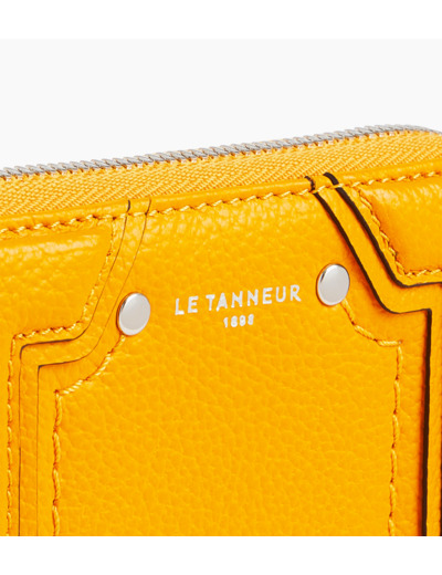 Dimensions compactes, cuir grainé pleine fleur, fermeture zippée métal, plusieurs emplacements pour cartes et un compartiment pour monnaie.