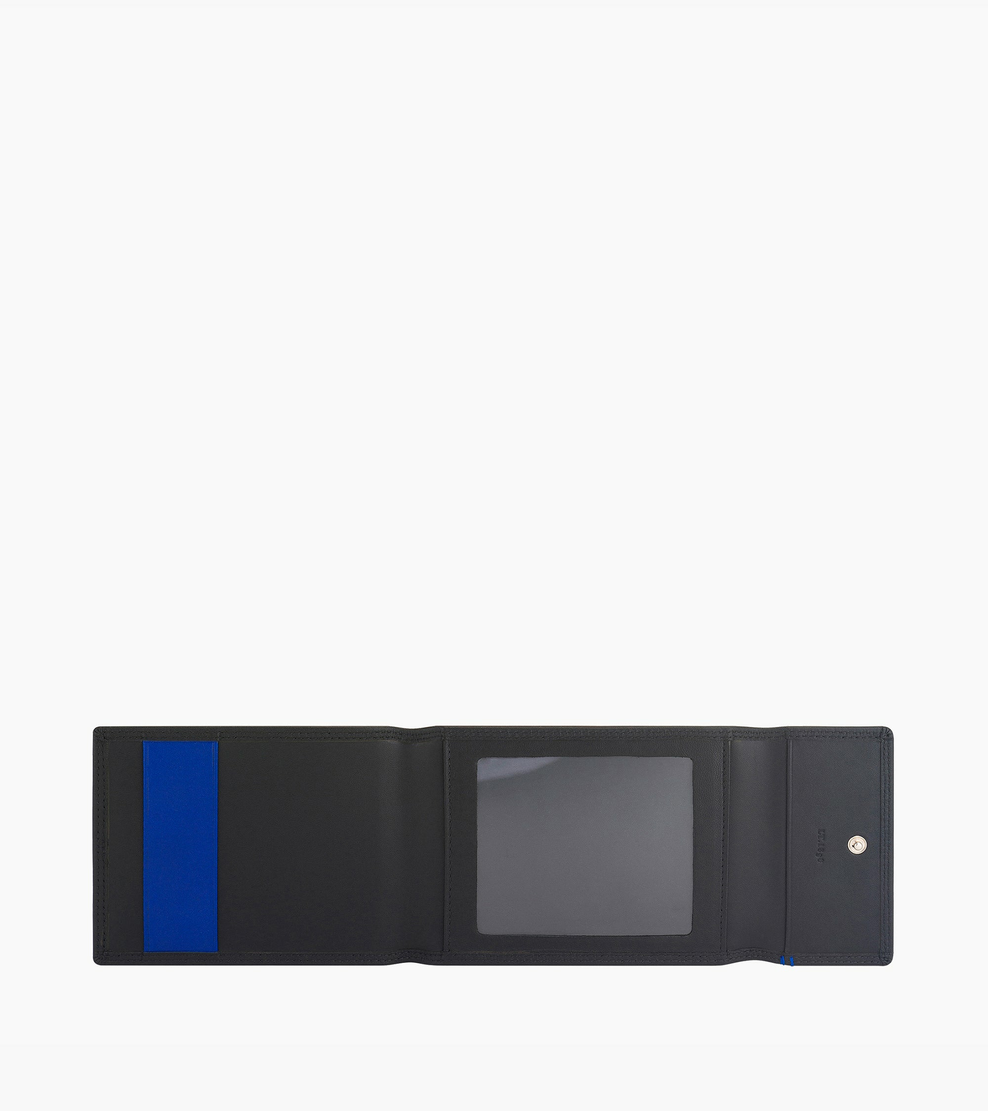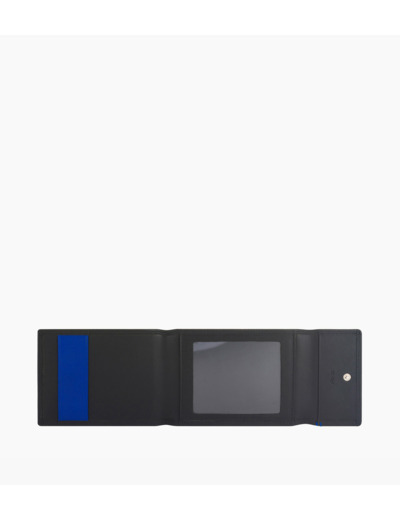 Ce porte-chéquier pliant arbore un discret marquage Le Tanneur couleur Le Bleu, ainsi qu’un double point du même contraste cousu à la main.Cuir de vachette pleine fleur lisse. Doublure textile.1 poche ID et 1 poche chequier.Accessoires métalliques finition argent.Largeur : 9.5 cm x Hauteur : 13 cm