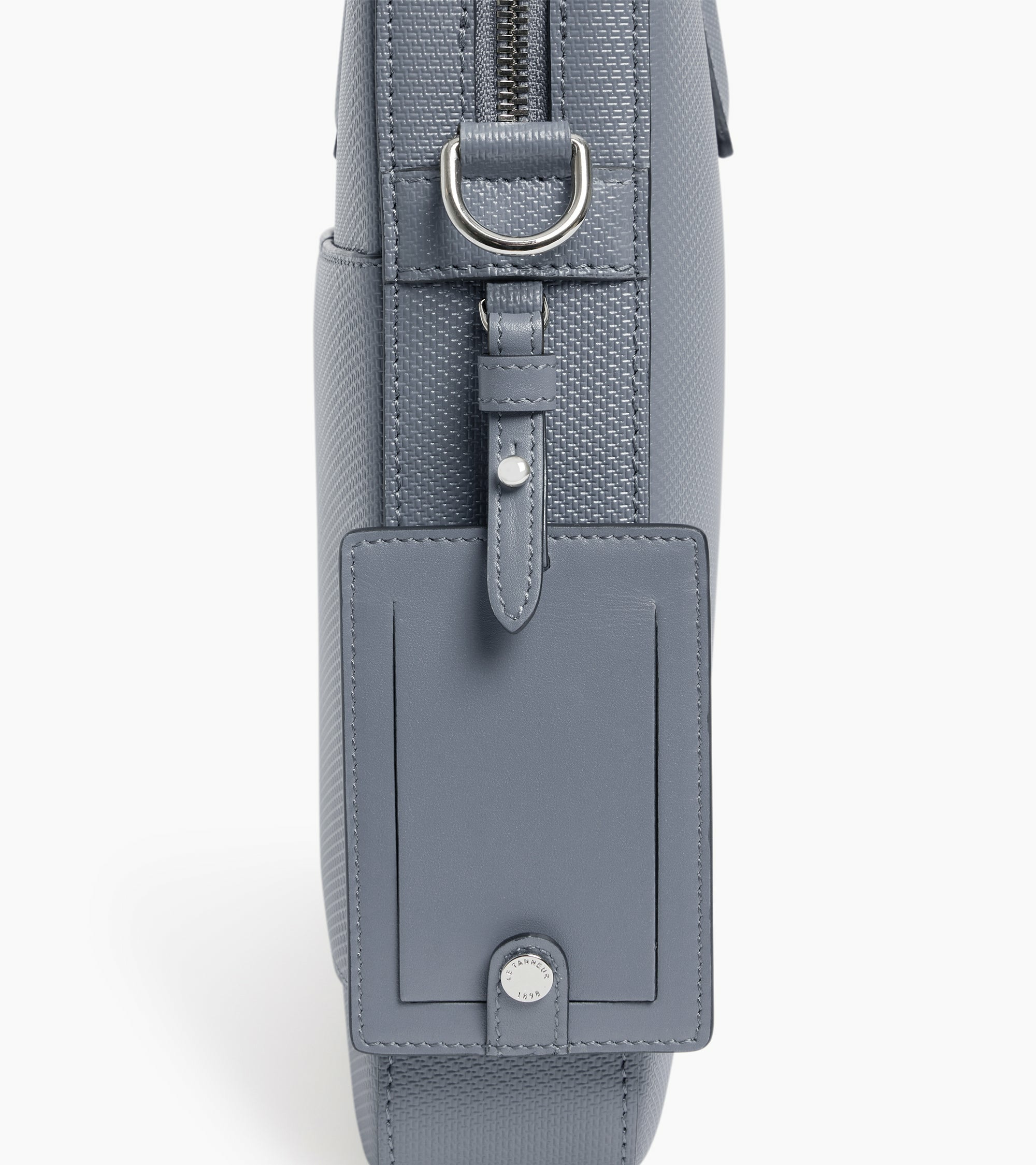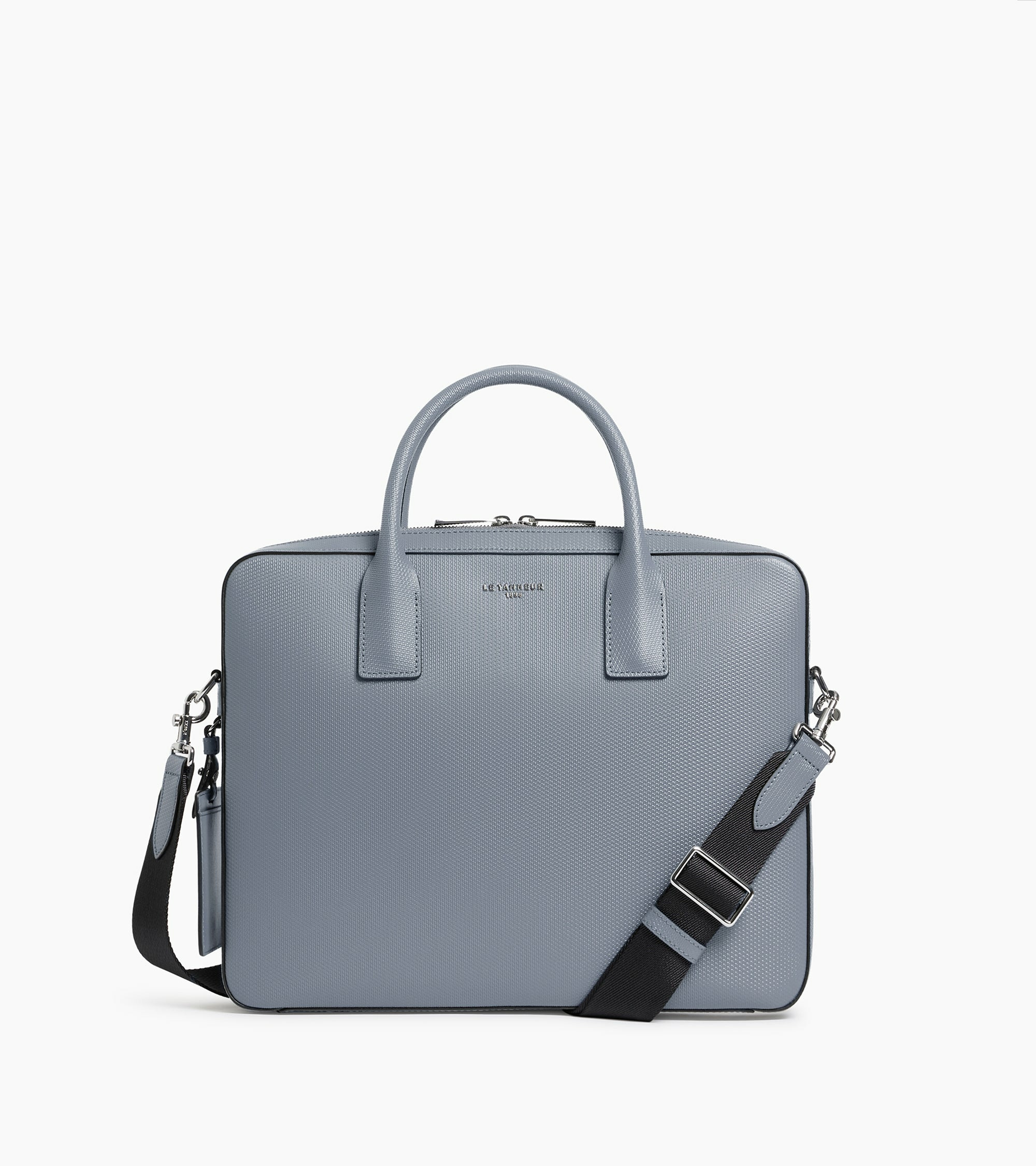 Porte-documents slim 14" finition canon de fusil avec poche ordinateur, passant trolley, charms amovible et marquage Le Tanneur en lettres métal noires. Porté main, épaule ou croisé grâce à sa bandoulière ajustable et amovible.Cuir de vachette signature T. Doublure textile jacquard crépuscule.1 poche moussée ordinateur, bouton pression, 1 poche zippée. Passant trolley. Bandoulière amovible et ajustable.Accessoires métalliques finition argent canon de fusil.Largeur : 36 cm x Hauteur : 29 cm x Profondeur : 5 cm