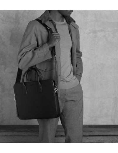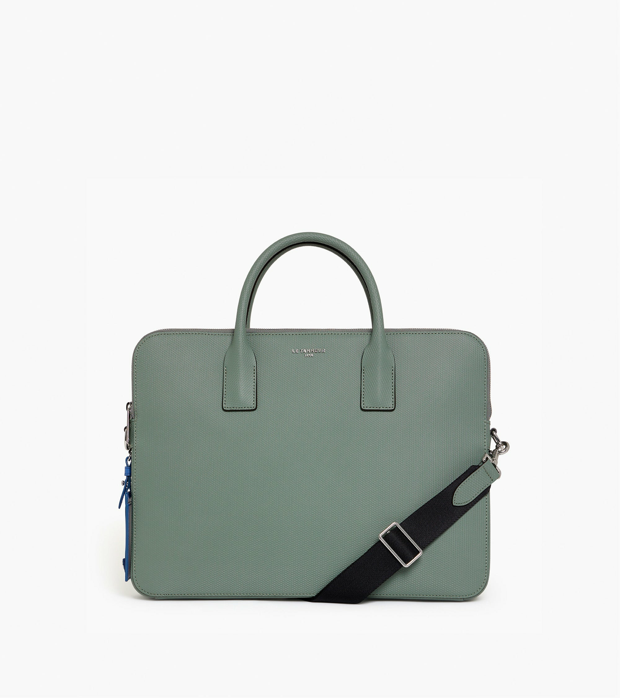 Porte-documents slim avec poche ordinateur 15, porte-étiquette amovible et passant trolley. Marquage Le Tanneur et éléments métalliques finition argent. Porté main, épaule ou croisé grâce à sa bandoulière ajustable et amovible."Cuir de vachette grain T. Doublure textile Le Bleu.1 poche zippée moussée ordinateur, 2 poches zippées, 1 poche plate et 1 passant trolley.Accessoires métalliques finition argent.Largeur : 40 cm x Hauteur : 30 cm x Profondeur : 8 cm