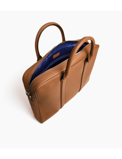 Dimensions adaptées pour un ordinateur 15 pouces, cuir grainé pleine fleur, fermeture zippée sécurisée, poignée robuste et bandoulière amovible pour un port à l’épaule ou à la main. Intérieur compartimenté avec poches plates pour accessoires.