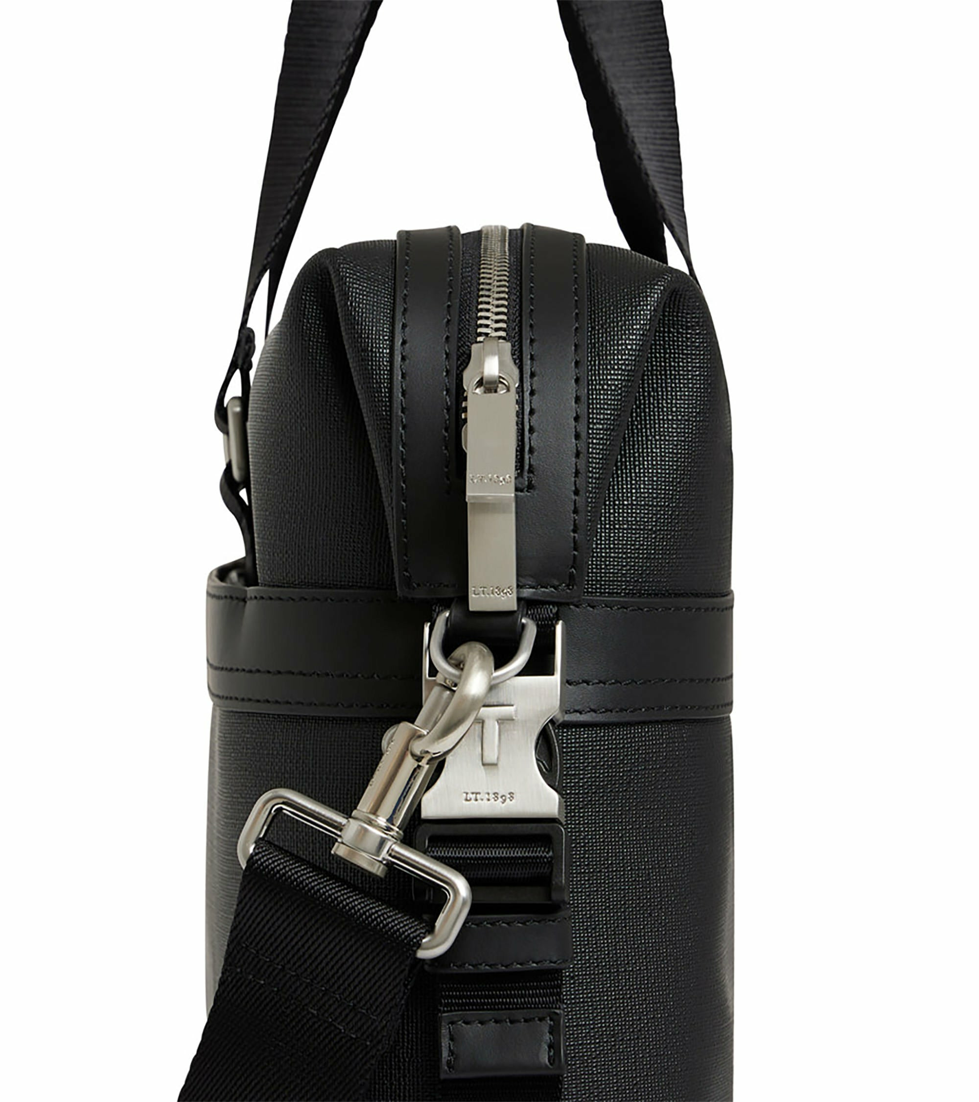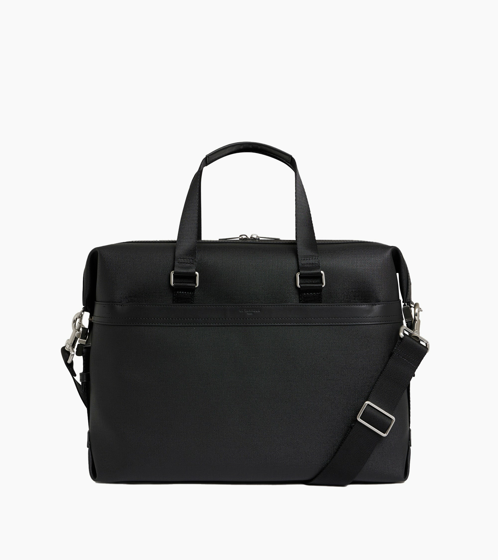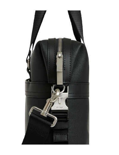 Porte-documents avec empiècement cuir embossé Le Tanneur et éléments métalliques finition argent brossé. Porté main, épaule ou croisé grâce à sa bandoulière ajustable et amovible.Toile enduite grainée et cuir de vachette pleine fleur lisse. Doublure textile Le Bleu.1 poche zippée et 1 poche moussée ordinateur. 1 poche zippée extérieure. Bandoulière amovible et ajustable.Accessoires métalliques finition argent brossé.Largeur : 40 cm x Hauteur : 10 cm x Profondeur : 29 cm