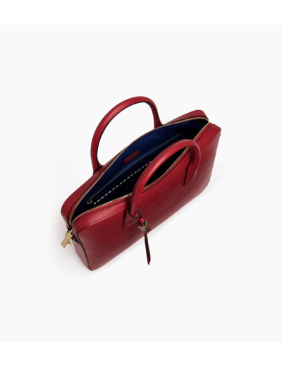 Porte-documents slim zippé avec charms signature, poche moussée ordinateur 15" et passant trolley. Porté main, croisé ou épaule grâce à sa bandoulière bicolore ajustable et amovible.Cuir de vachette pleine fleur grainé. Doublure textile Le Bleu.1 poche moussée ordinateur, 1 bouton pression, 1 poche zippée. Passant trolley. Bandoulière ajustable et amovible.Accessoires métalliques finition doré clair.Largeur : 36 cm x Hauteur : 29 cm x Profondeur : 7 cm