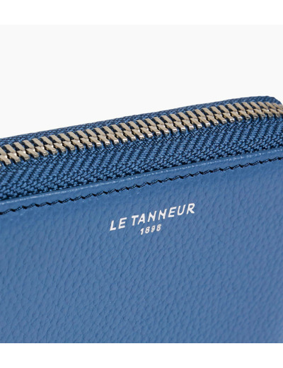 Porte-monnaie zippé marqué Le Tanneur. Sécurité anti-RFID.Cuir de vachette pleine fleur grainé. Doublure textile Le Bleu.2 soufflets et 2 compartiments cartes.Accessoires métalliques finition argent.Largeur : 10 cm x Hauteur : 8 cm