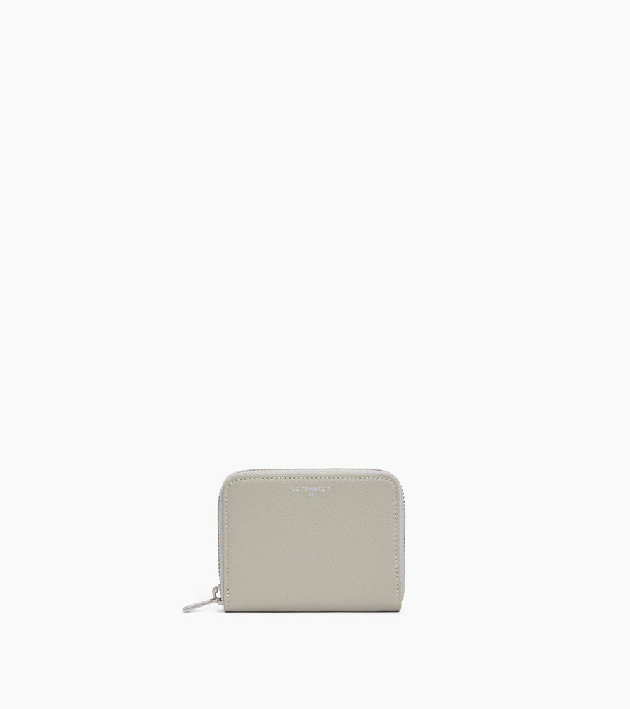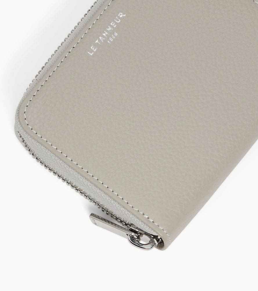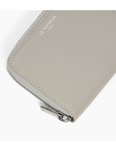 Dimensions compactes, cuir grainé pleine fleur, fermeture sécurisée par zip, intérieur compartimenté pour pièces et billets, logo Le Tanneur embossé.