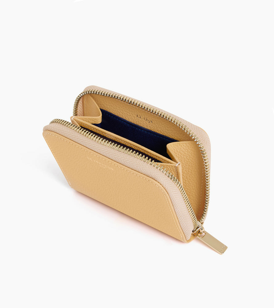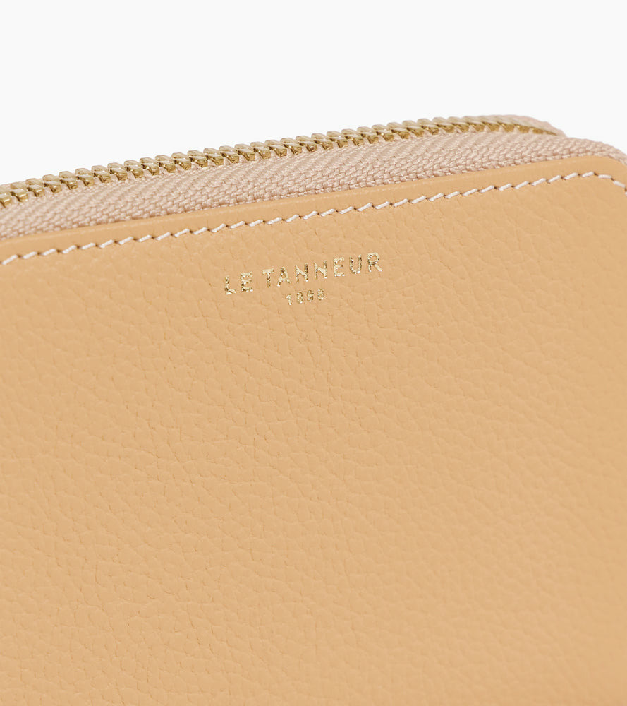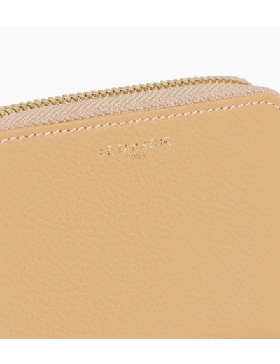 Dimensions compactes, cuir grainé pleine fleur, fermeture sécurisée par zip, intérieur compartimenté pour pièces et billets, logo Le Tanneur embossé.