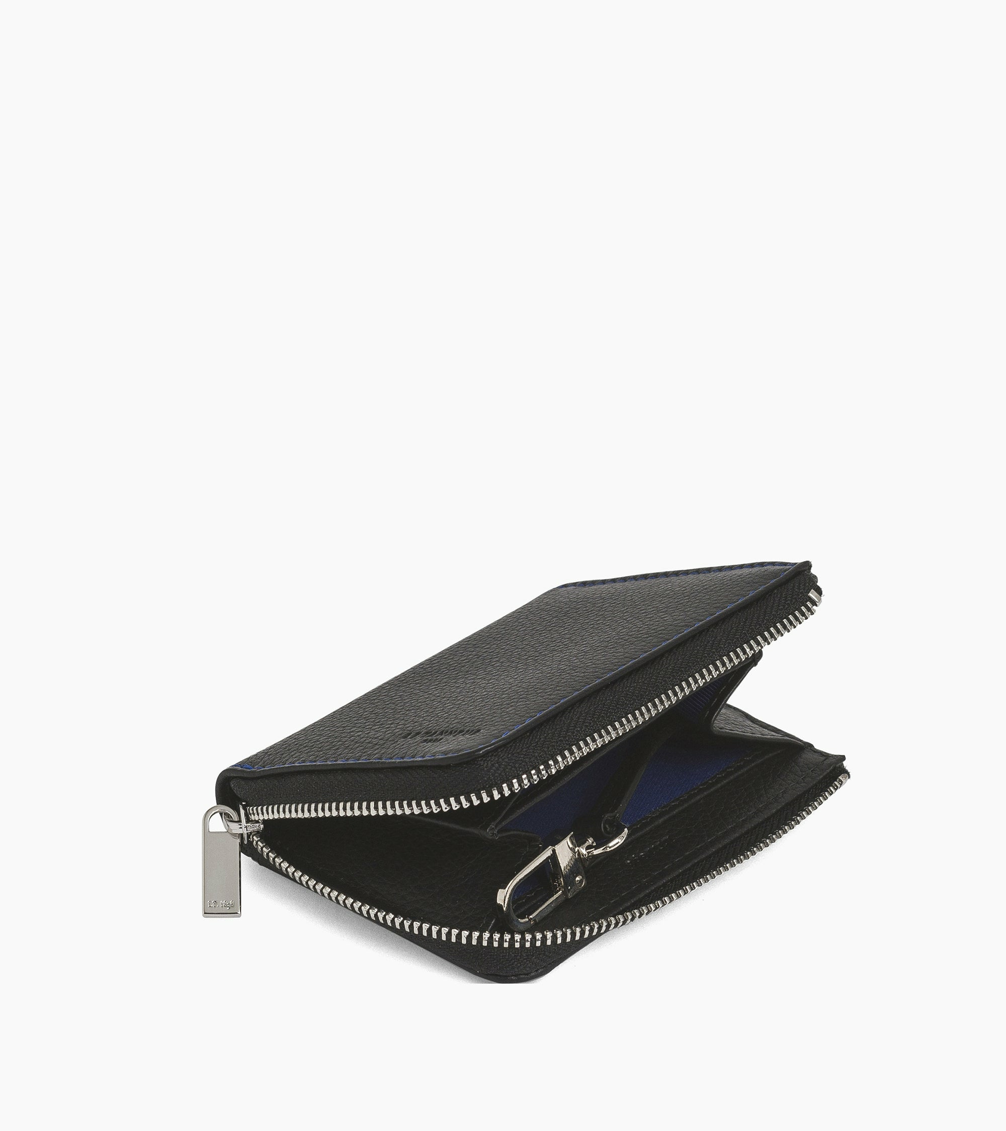 Dimensions compactes, cuir grainé pleine fleur, fermeture zippée en L, compartiments pour pièces et billets, fabrication française signée Le Tanneur.