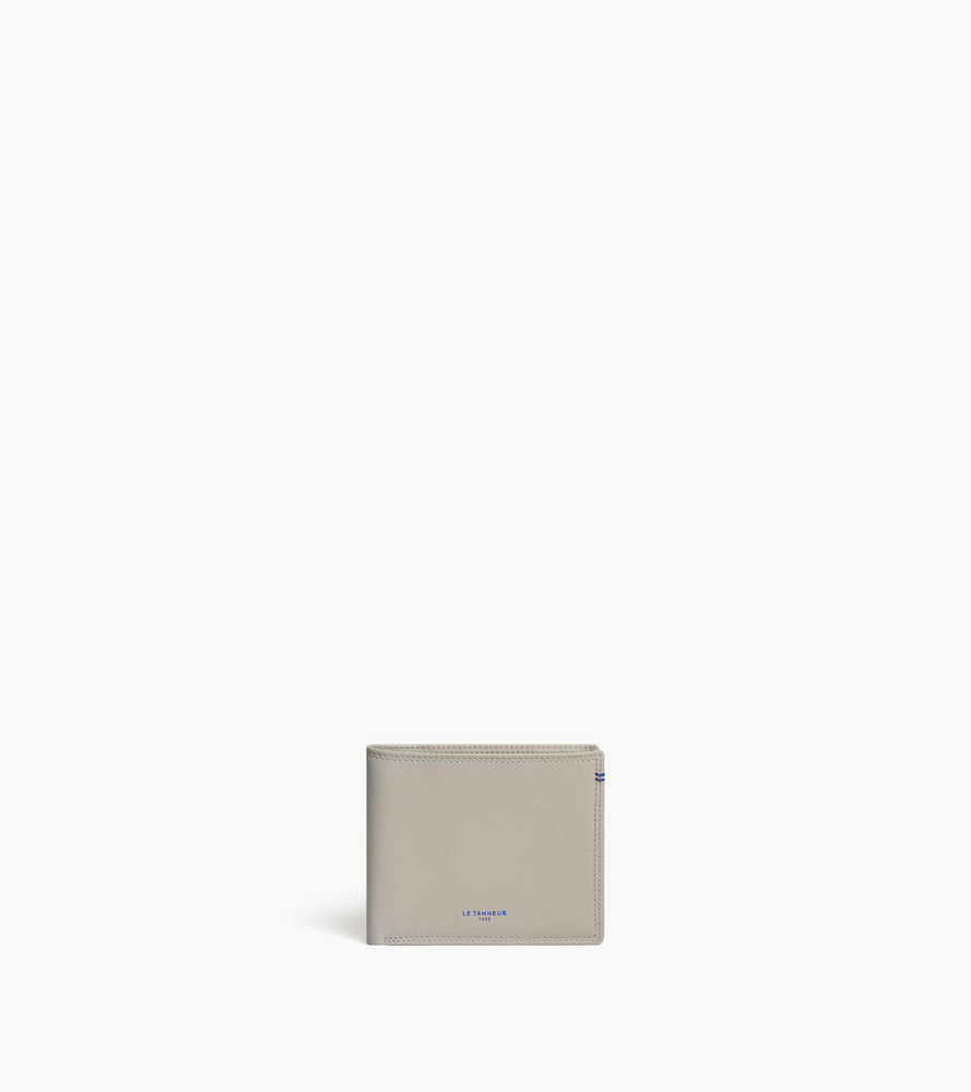 Dimensions compactes, cuir lisse pleine fleur, fermeture à rabat sécurisée, plusieurs compartiments pour cartes, billets et monnaie. Fabrication française, finition soignée signée Le Tanneur.