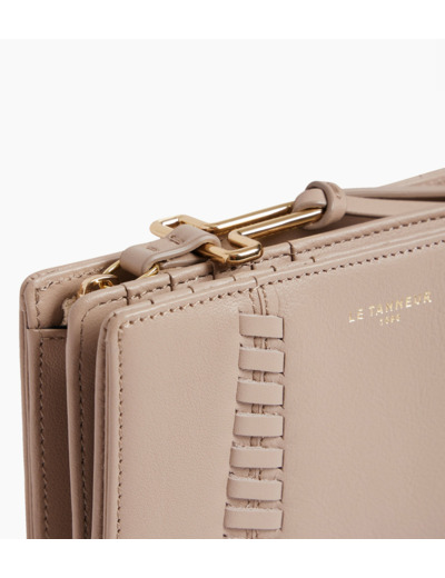 Portefeuille moyen modèle avec fermeture pression et franges signature. Marquage Le Tanneur et poche monnaie zippée avec bijouterie T finition doré clair.Cuir de vachette pleine fleur grainé. Doublure textile jacquard.1 poche monnaie zippée, 2 soufflets, 1 poche billets, 10 compartiments cartes et 3 poches platesAccessoires métalliques finition doré clair.Largeur : 9.5 cm x Hauteur : 14 cm x Profondeur : 1 cm