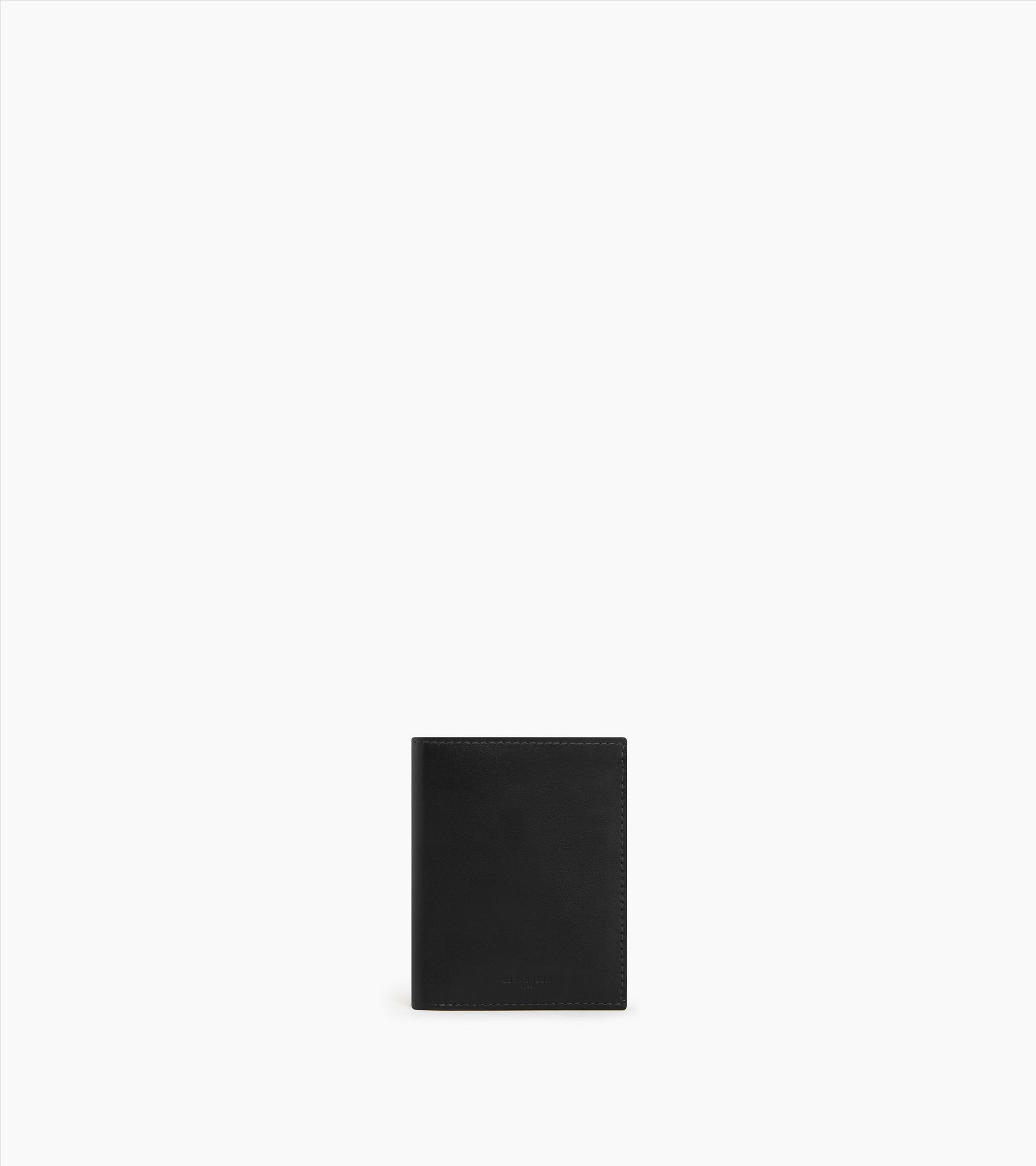 Portefeuille vertical moyen modèle fabriqué en France à partir de cuir d'origine italienne, avec montage bord franc et piqure contrastée. Marquage Le Tanneur embossé ton sur ton et zip finition argent.Cuir de vachette pleine fleur lisse. Doublure textile Le Bleu2 poches billets, 8 compartiments cartes, 2 poches plates, 1 poche monnaie zippée.Accessoires métalliques finition argent.Largeur : 10 cm x Hauteur : 12.5 cm x Profondeur : 1 cm