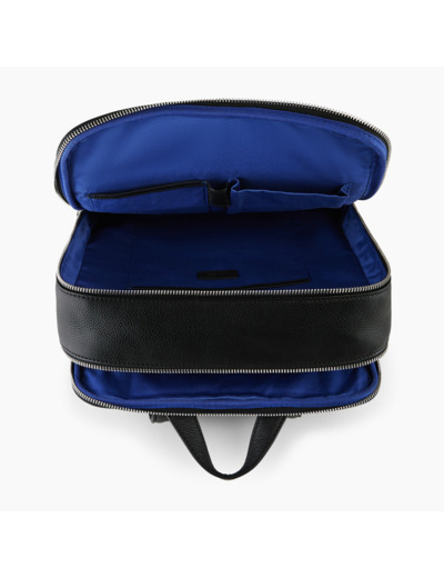 Sac à dos zippé avec bretelles ajustables, poche ordinateur moussée et marquage Le Tanneur ton sur ton.Cuir de vachette pleine fleur grainé. Doublure textile Le Bleu.3 poches plates et 1 passant stylo, 1 poche moussée ordinateur, 2 poches zippées avant. Bretelles ajustables.Accessoires métalliques finition argent.Largeur : 28 cm x Hauteur : 38 cm x Profondeur : 13 cm