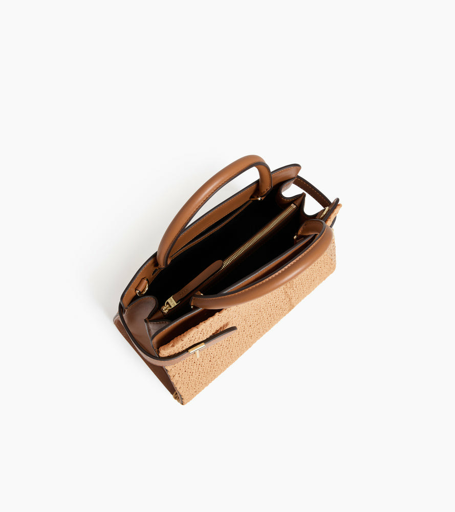 Le sac à main moyen modèle Emie allie élégance naturelle et modernité avec son effet raphia subtilement associé au cuir lisse. Un choix raffiné pour sublimer toutes vos tenues, du bureau à vos sorties.