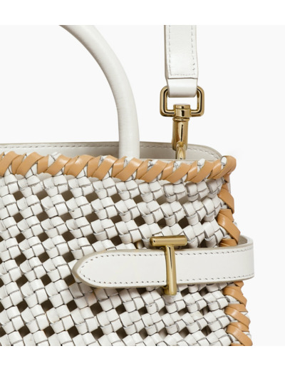 Sac à main moyen modèle en cuir tressé avec fermoirs T signature, doublure jacquard anniversaire et marquage Le Tanneur embossé ton sur ton. Porté main, épaule ou croisé grâce à sa bandoulière ajustable et amovible.Cuir de vachette pleine fleur lisse. Doublure textile jacquard anniversaire noir.4 compartiments dont 1 zippé. 2 poches plates. 1 poche plate arrière. Bandoulière ajustable et amovibleAccessoires métalliques finition doré clair.Largeur : 28 cm x Hauteur : 19.5 cm x Profondeur : 12.5 cm