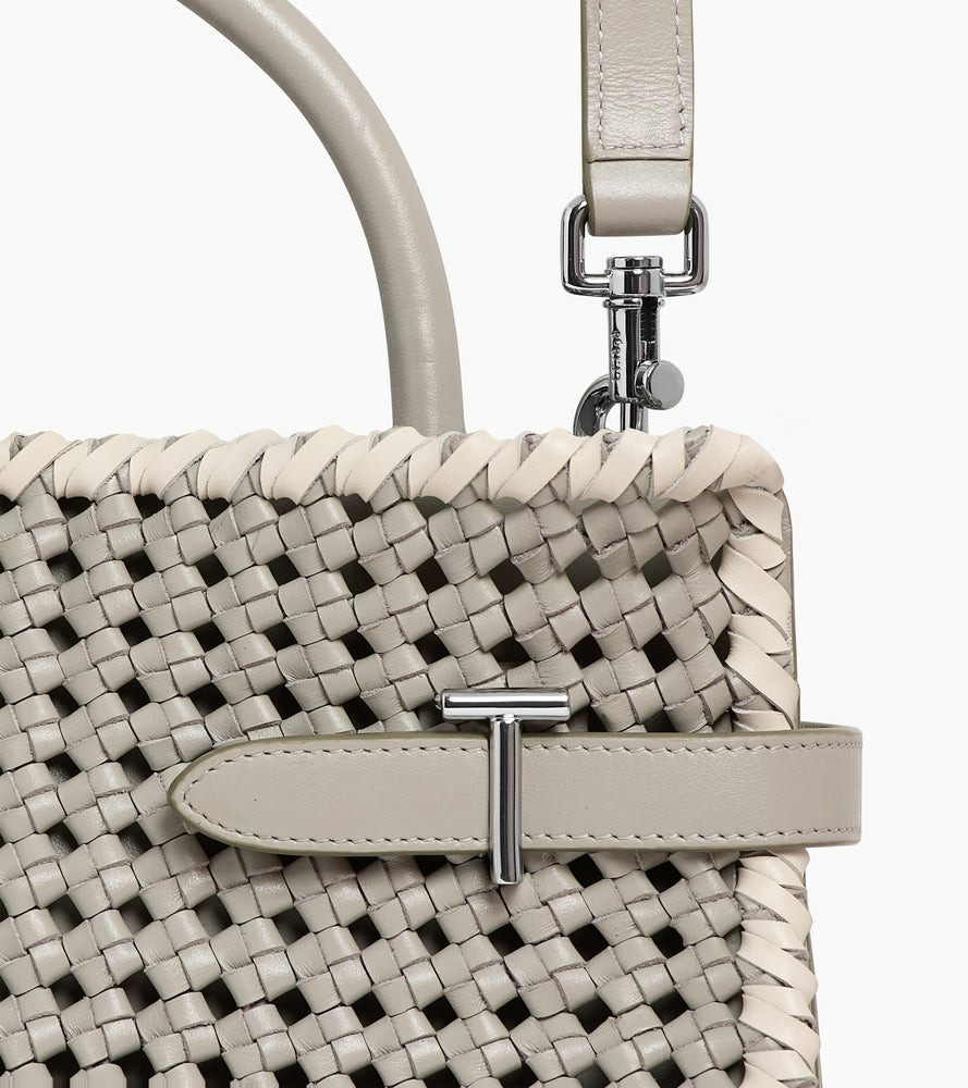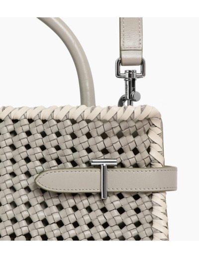 Sac à main moyen modèle en cuir tressé avec fermoirs T signature, doublure jacquard anniversaire et marquage Le Tanneur embossé ton sur ton. Porté main, épaule ou croisé grâce à sa bandoulière ajustable et amovible.Cuir de vachette pleine fleur lisse. Doublure textile jacquard anniversaire noir.4 compartiments dont 1 zippé. 2 poches plates. 1 poche plate arrière. Bandoulière ajustable et amovibleAccessoires métalliques finition argent.Largeur : 28 cm x Hauteur : 19.5 cm x Profondeur : 12.5 cm