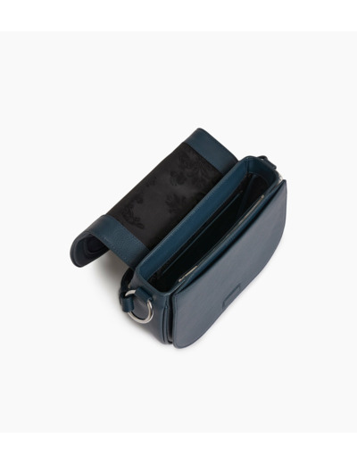 Fabriqué en cuir grainé et nubuck, ce sac mesure environ 25 cm de largeur, 18 cm de hauteur et 8 cm de profondeur. Il se ferme par un rabat sécurisé et dispose d’une poche intérieure zippée ainsi que d’un compartiment principal spacieux. La bandoulière est réglable pour un porté croisé ou épaule.