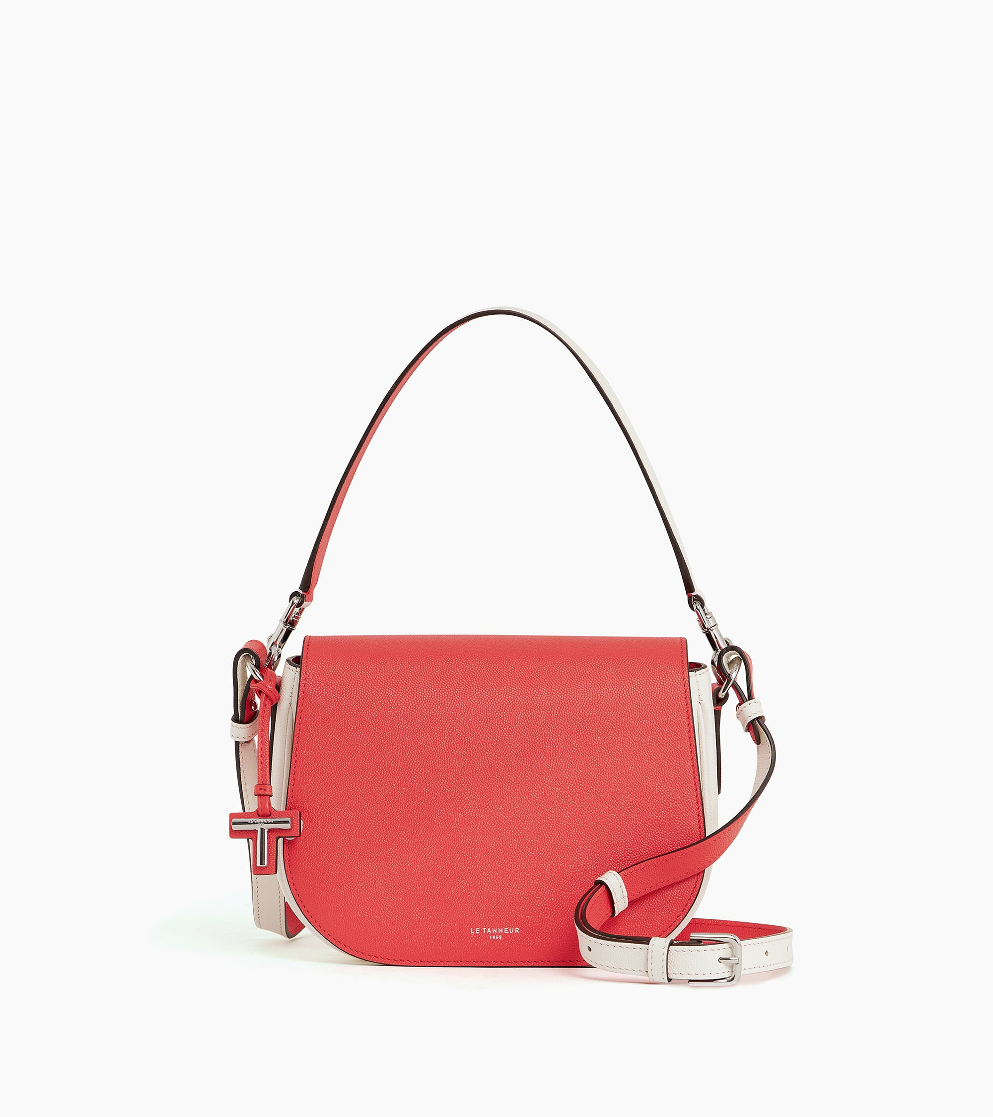 Petit sac besace bicolore avec poignée ajustée au corps du sac et marquage Le Tanneur finition argent. Porté épaule ou croisé grâce à sa bandoulière ajustable.Cuir de vachette pleine fleur grain caviar. Doublure textile Le Bleu.2 poches plates, 1 poche zippée. 1 mousqueton clé, 1 poignée amovible. Bandoulière ajustable et amovible.Accessoires métalliques finition argent.Largeur : 23 cm x Hauteur : 17 cm x Profondeur : 8 cm