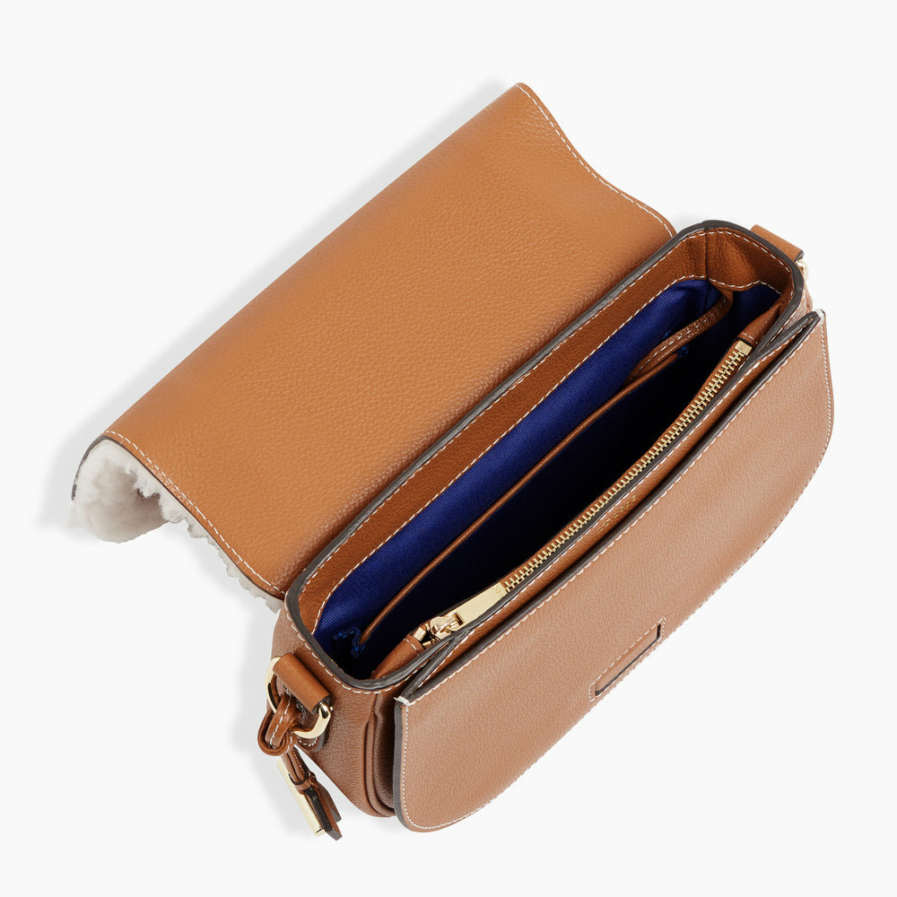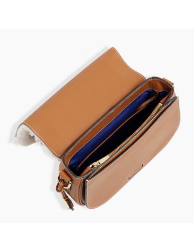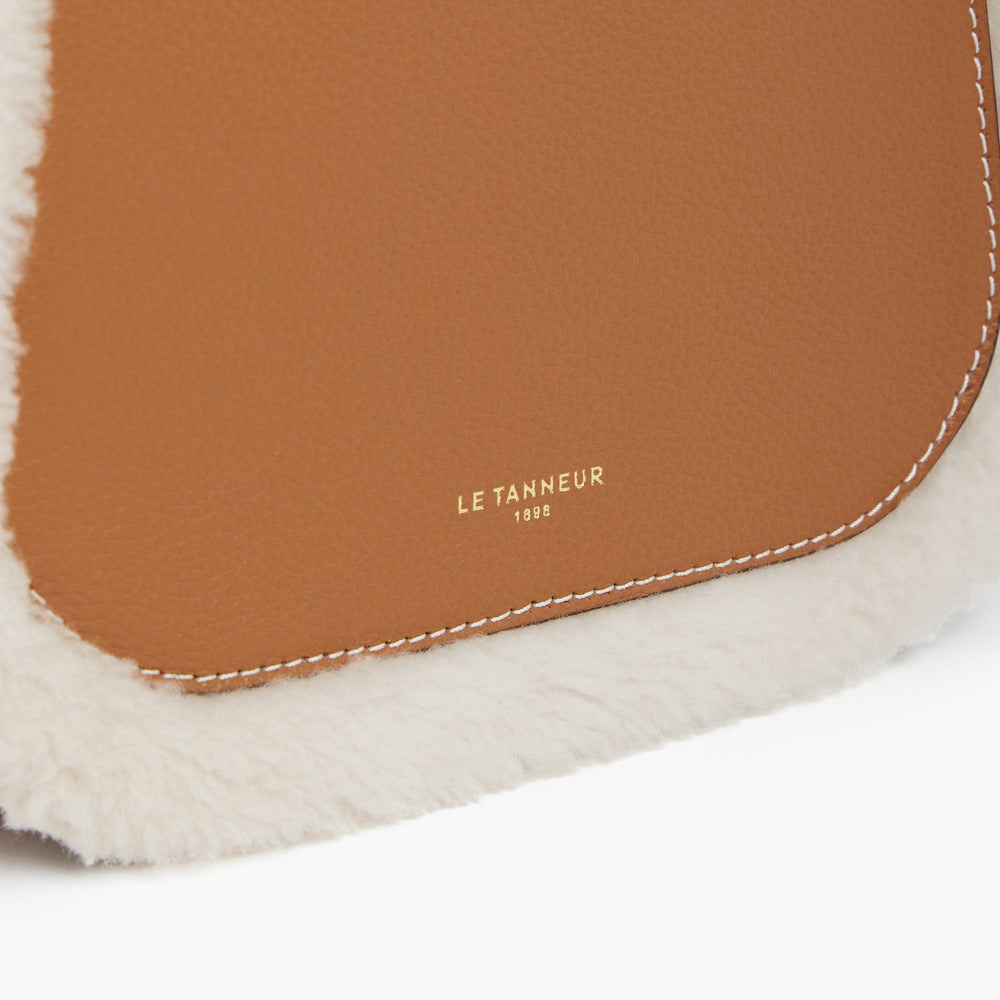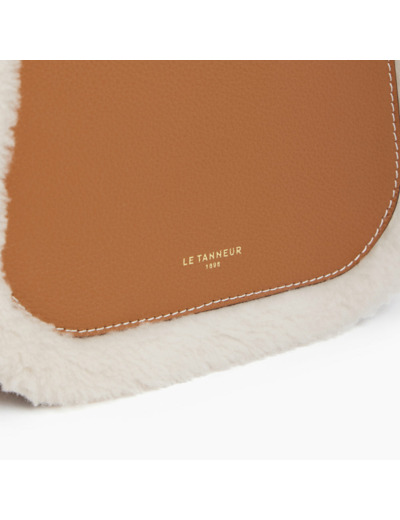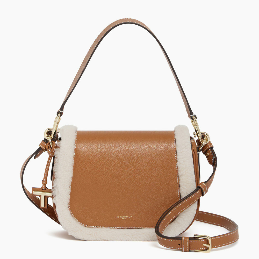 Sac bandoulière moyen modèle marquage Le Tanneur. Porté épaule ou croisé grâce à sa bandoulière ajustable et amovible et sa poignée amovible.Cuir de vachette pleine fleur grainé et en peau lainé. Doublure textile.2 poches plates et 1 poche zippée 1 mousqueton clés. Poignée amovible Bandoulière amovible et ajustable.Accessoires métalliques finition doré clair.Largeur : 22 cm x Hauteur : 17 cm x Profondeur : 8 cm