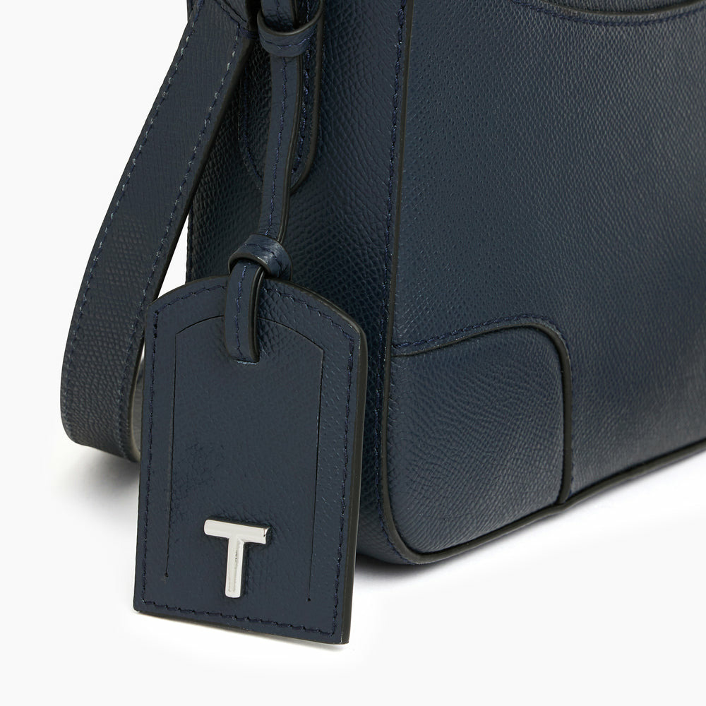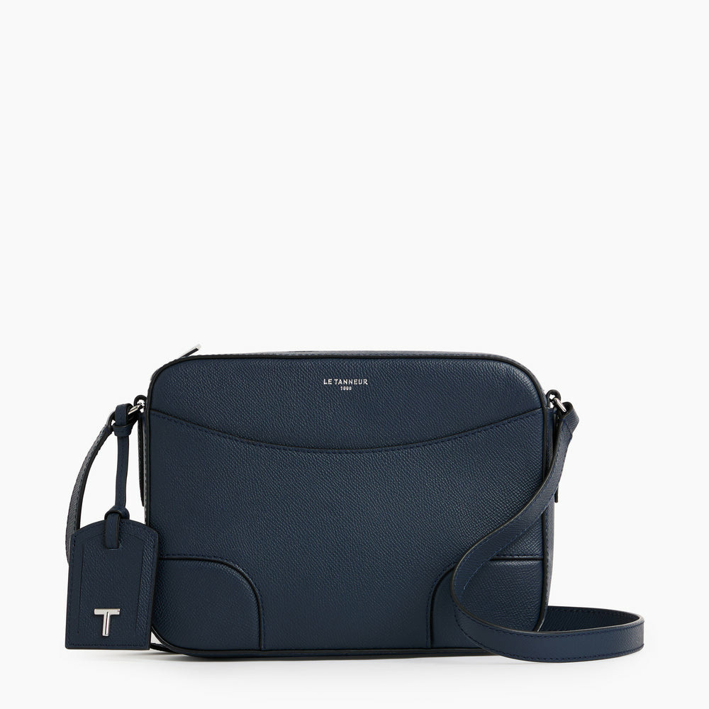 Dimensions compactes, cuir grain croisé pleine fleur, bandoulière réglable, fermeture zippée sécurisée, intérieur doublé avec poche plate.