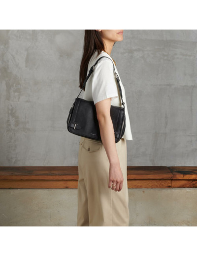 Dimensions : moyen modèle. Matière : cuir grainé. Fermeture zippée. Bandoulière ajustable. Intérieur compartimenté avec poche zippée.
