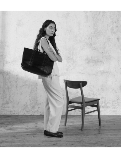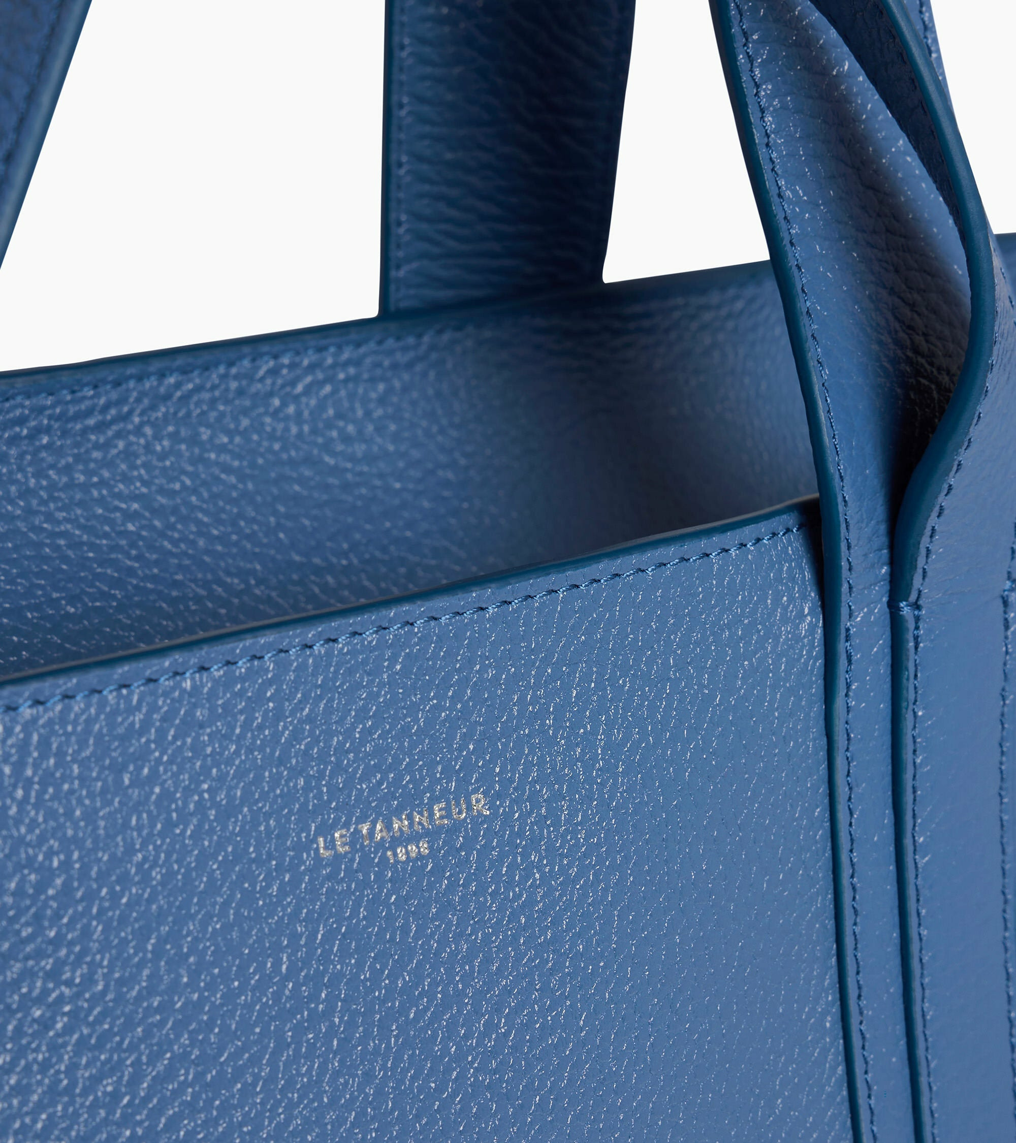 Sac cabas avec poche zippée et marquage Le Tanneur sur film argent. Porté main ou épaule grâce à sa double poignée.Cuir de vachette pleine fleur grainé. Doublure textile Le Bleu.1 poche plate et 1 poche zippée. Fermeture zippée. Système de double poignée.Accessoires métalliques finition argent.Largeur : 42 cm x Hauteur : 32 cm x Profondeur : 19 cm