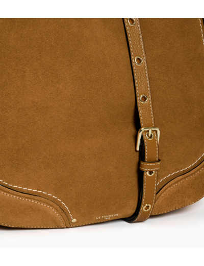 Sac hobo souple moyen modèle en cuir grainé et nubuck, avec marquage Le Tanneur et intérieur jacquard anniversaire 125 ans. Porté épaule ou croisé grâce à sa poignée amovible et à sa bandoulière ajustable.Cuir de vachette grainé et suède pleine fleur et refente de cuir. Doublure textile jacquard anniversaire noir.1 poche plate et 1 poche zippée intérieures. Anse amovible. Bandoulière ajustable et amovible.Accessoires métalliques finition doré clair.Largeur : 35 cm x Hauteur : 35 cm x Profondeur : 9 cm