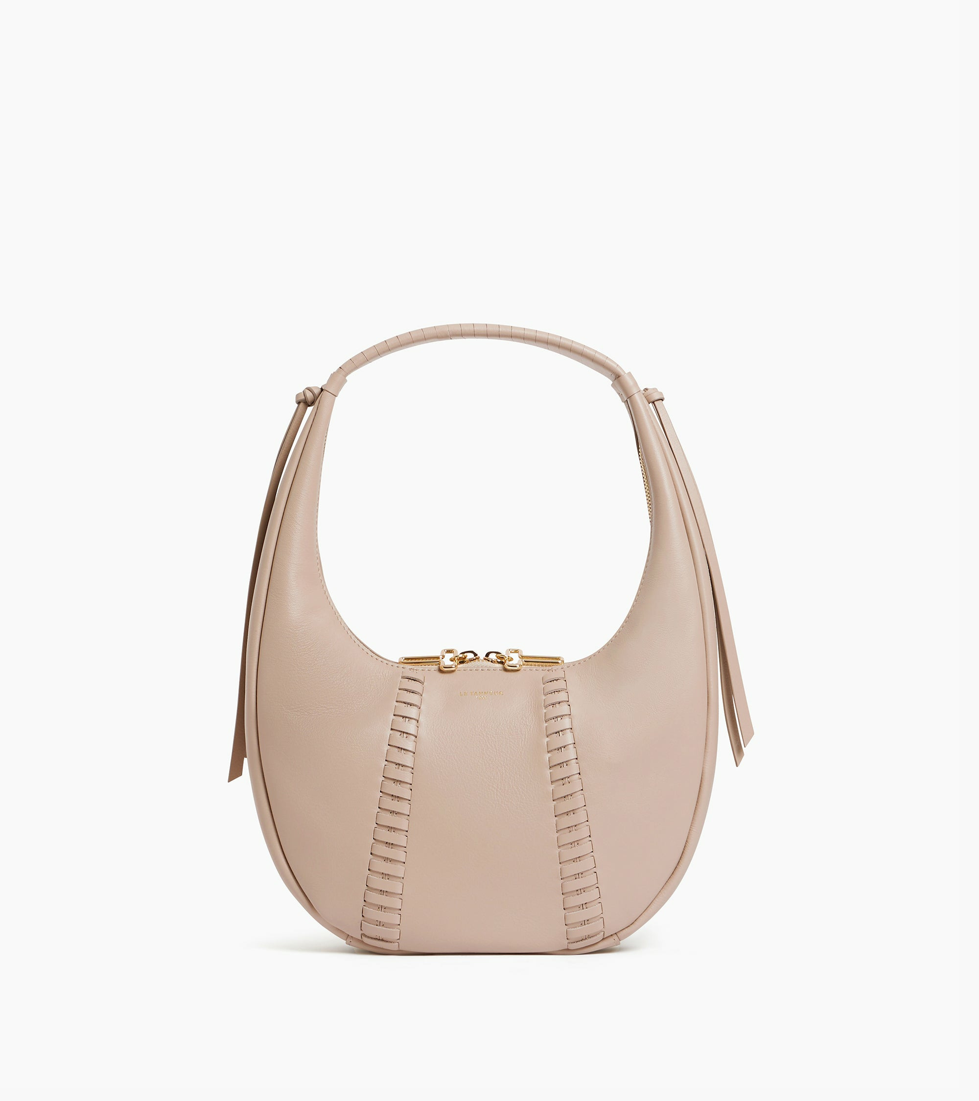 Sac hobo moyen modèle avec zip et franges signature. Marquage Le Tanneur et éléments métalliques finition doré clair. Porté main ou épaule.Cuir de vachette pleine fleur grainé. Doublure textile jacquard.1 poche plate avant et 1 poche plate zippéeAccessoires métalliques finition doré clair.Largeur : 28 cm x Hauteur : 17 cm x Profondeur : 7 cm