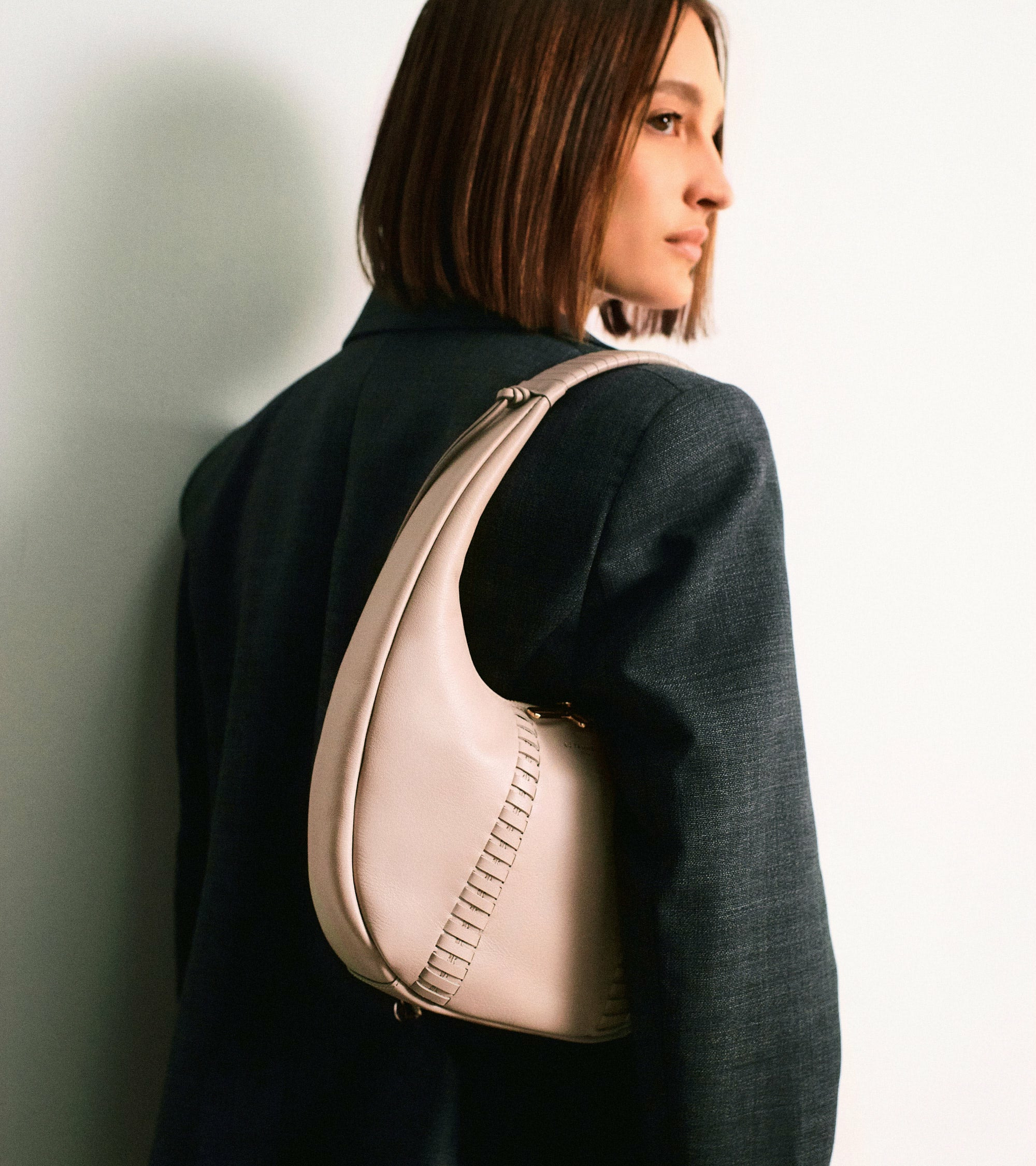 Dimensions moyennes adaptées à un usage quotidien, cuir lisse pleine fleur, fermeture zippée sécurisée, anse unique pour un porté épaule confortable.