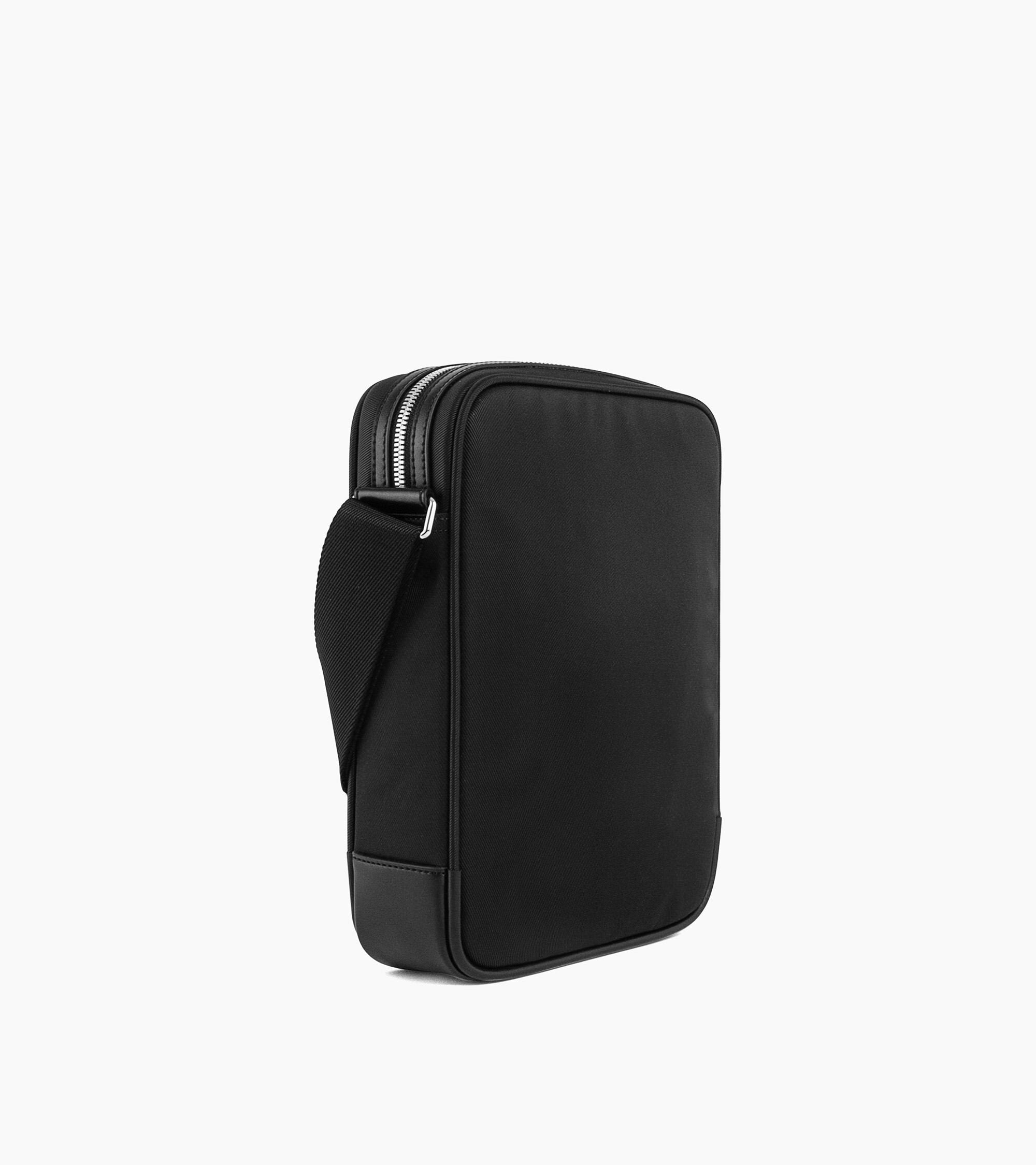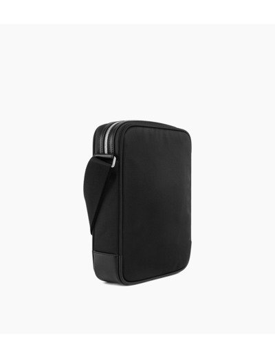 Sacoche moyen modèle en toile polyamide avec renfort cuir marqué ton sur ton. Ce moyen modèle se porte à l’épaule ou croisé. Bandoulière ajustable.Toile enduite et cuir de vachette lisse. Doublure textile.1 poche moussée, 1 passant stylo et 1 poche téléphone. 1 poche zippée avant. Bandoulière ajustable.Accessoire métallique finition argent.Largeur : 24 cm x Hauteur : 28 cm x Profondeur : 6 cm