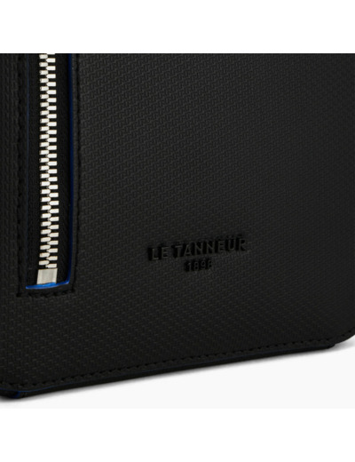 Sacoche sling avec charms amovible et marquage Le Tanneur ton sur ton. Porté croisé grâce à sa bandoulière ajustable pour droitier ou gaucher.Cuir de vachette grain T. Doublure textile jacquard.1 poche plate, 1 poche zippée avant. Bandoulière ajustable droitier gaucher.Accessoires métalliques finition argent.Largeur : 16 cm x Hauteur : 22 cm x Profondeur : 5 cm