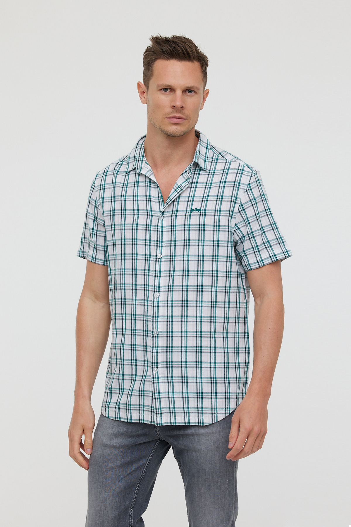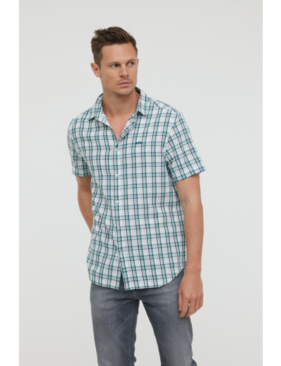 Chemise À Carreaux Manches Courtes Et Broderie Poitrine