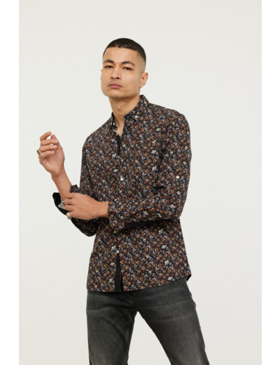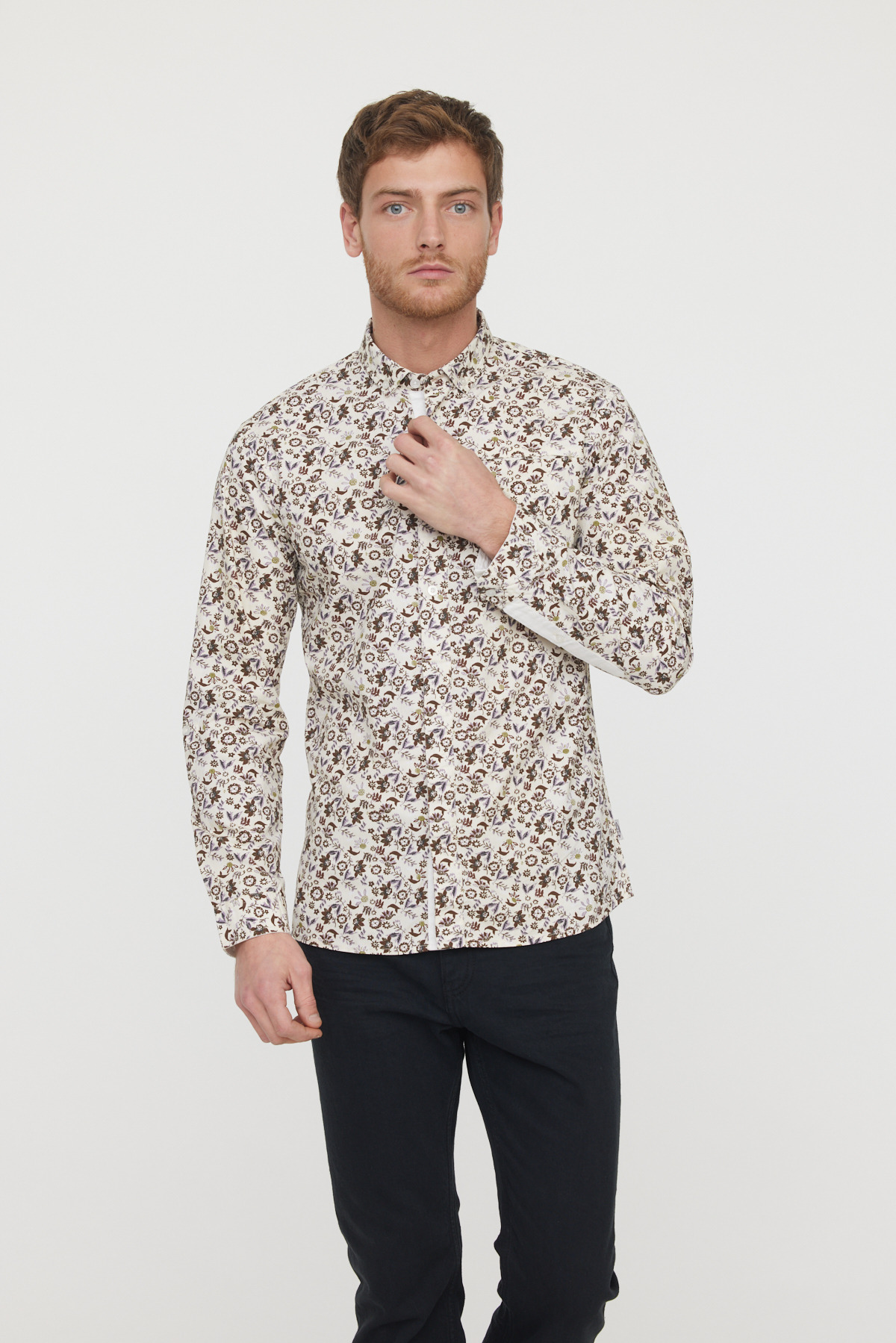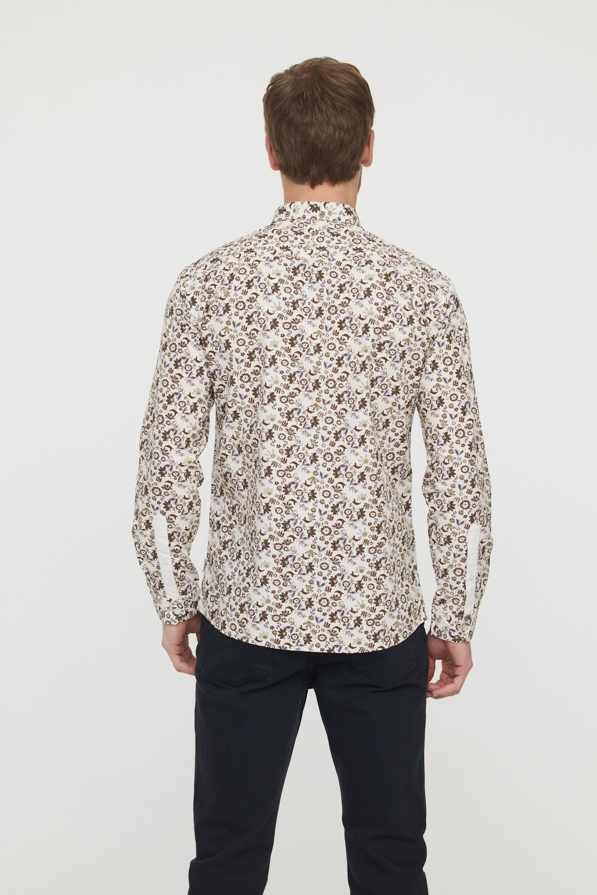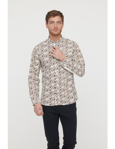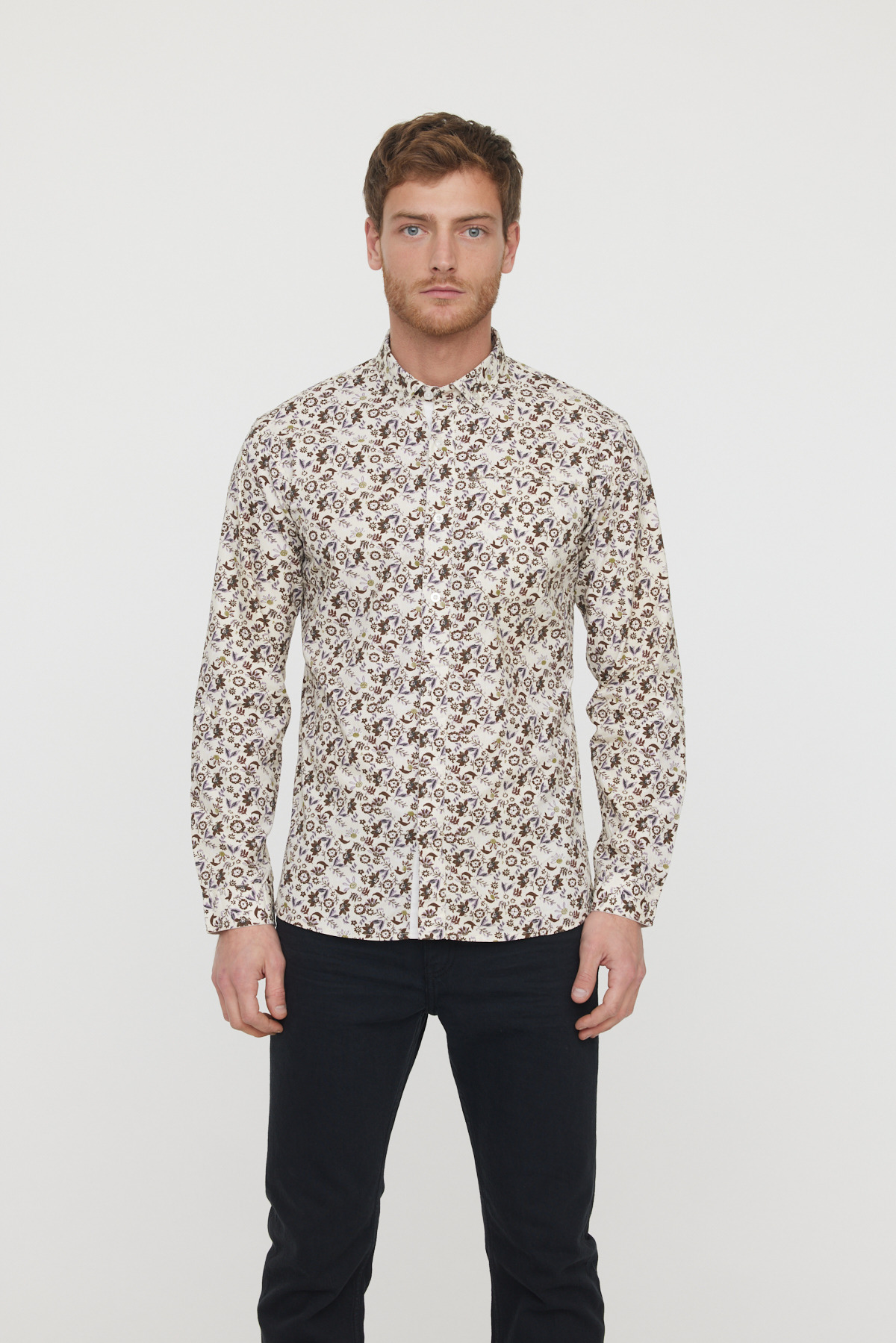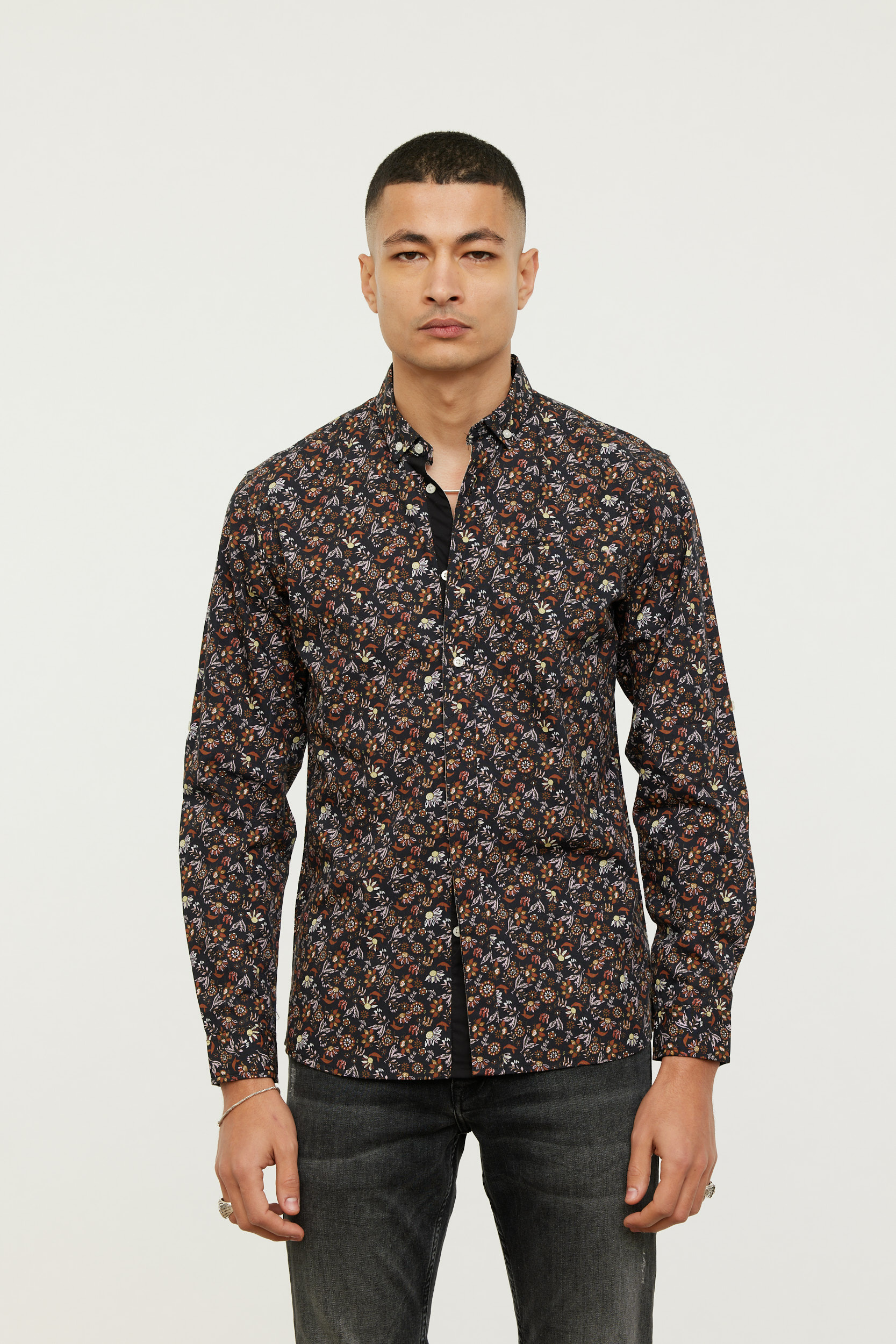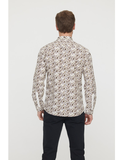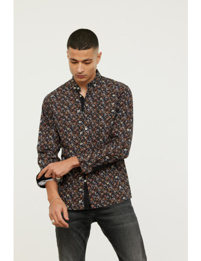 Chemise Allover, Détails Contrastés Et Manches Retroussables