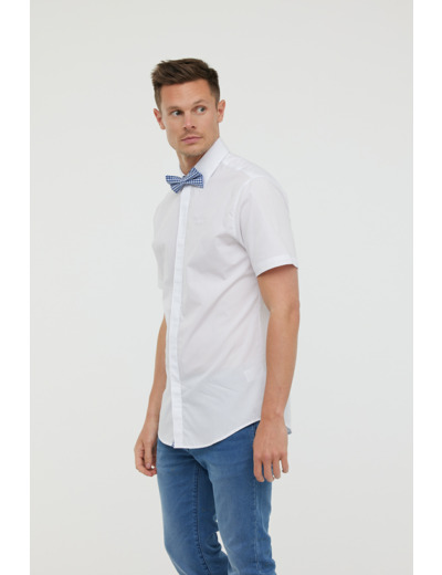 Chemise Manches Courtes En Popeline De Coton, Boutonnage Caché Avec Détails Vichy, Broderie Poitrine Et Noeud Papillon Détachable En Vichy